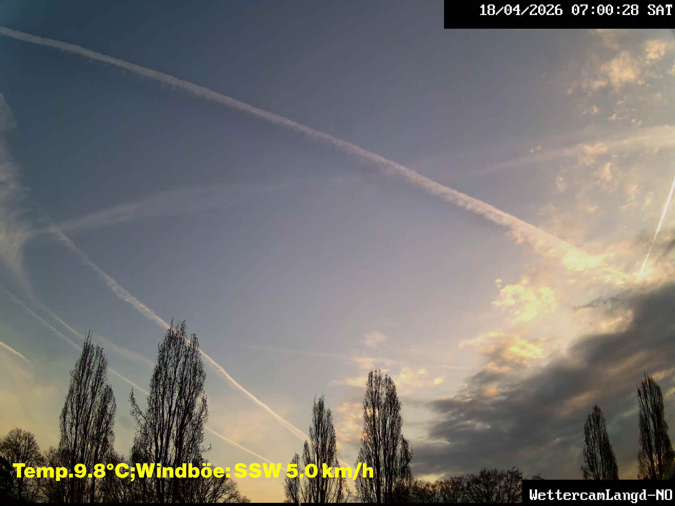 Ciel assez voilé, le soleil brille relativement tout de même. 10,4°C, en hausse. Vent calme. Température Mini : 6,0°C. |