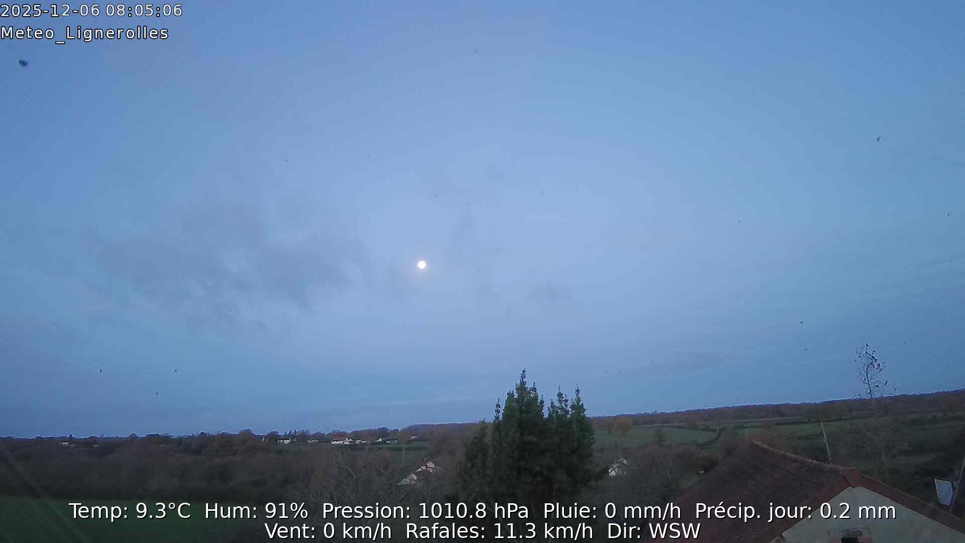 Température : 13,7C° Humidité : 90 pour cent Windchill : 14C° Vent : Ouest Pluie 24H : 7,10mm Pression : 1009 m bar Source : Netatmo |