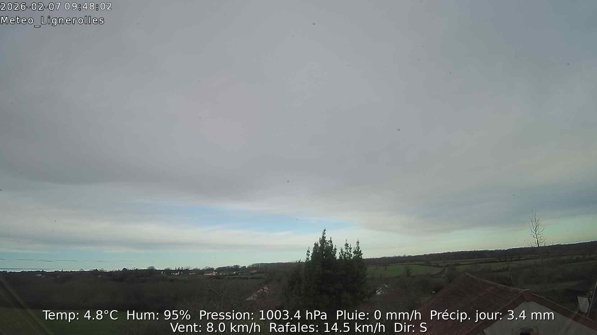 Température : 5° Ressenti : 5° Humidité : 93% Pression : 1003 hPa Vent : 4 km/h SO |
