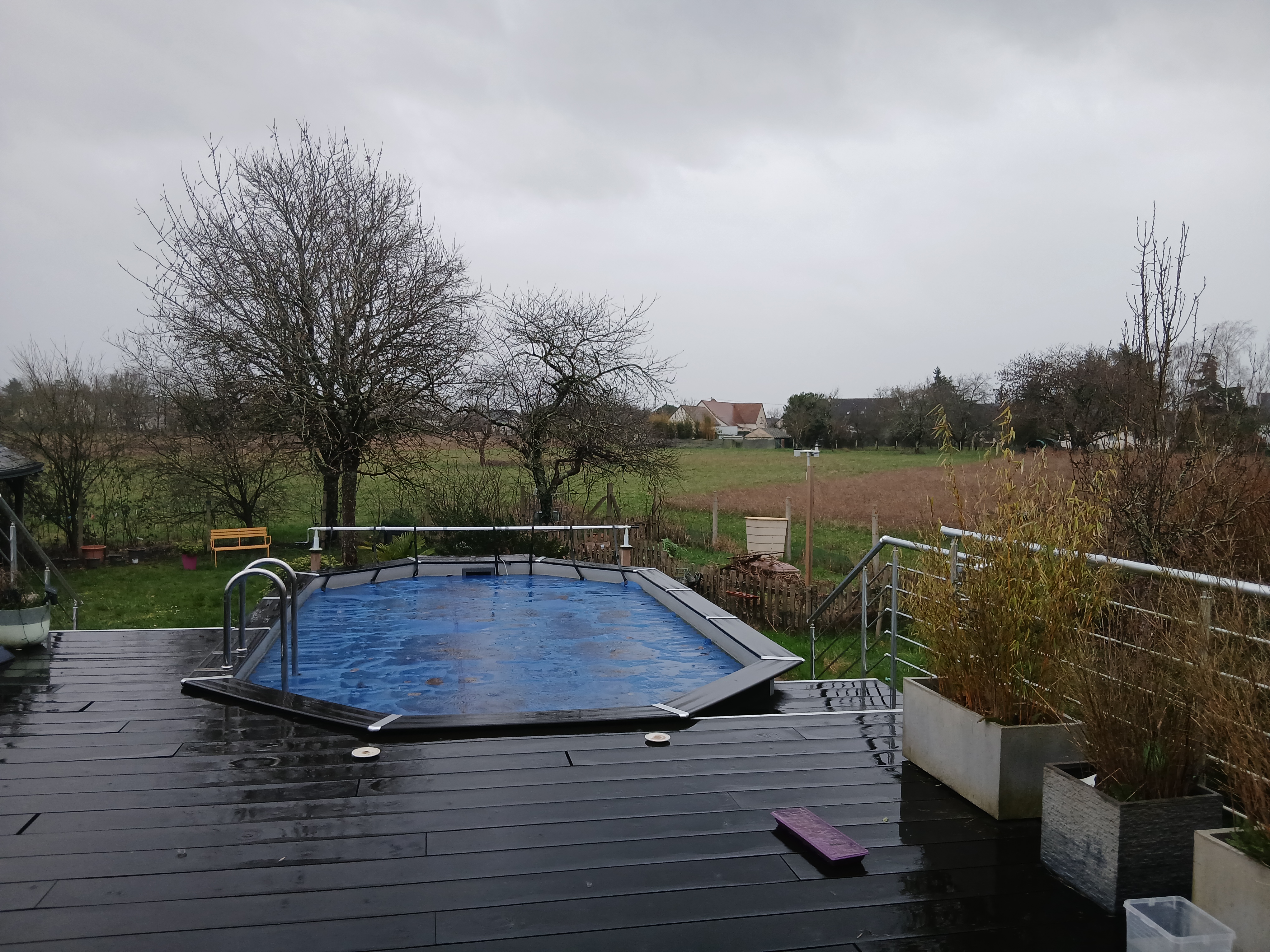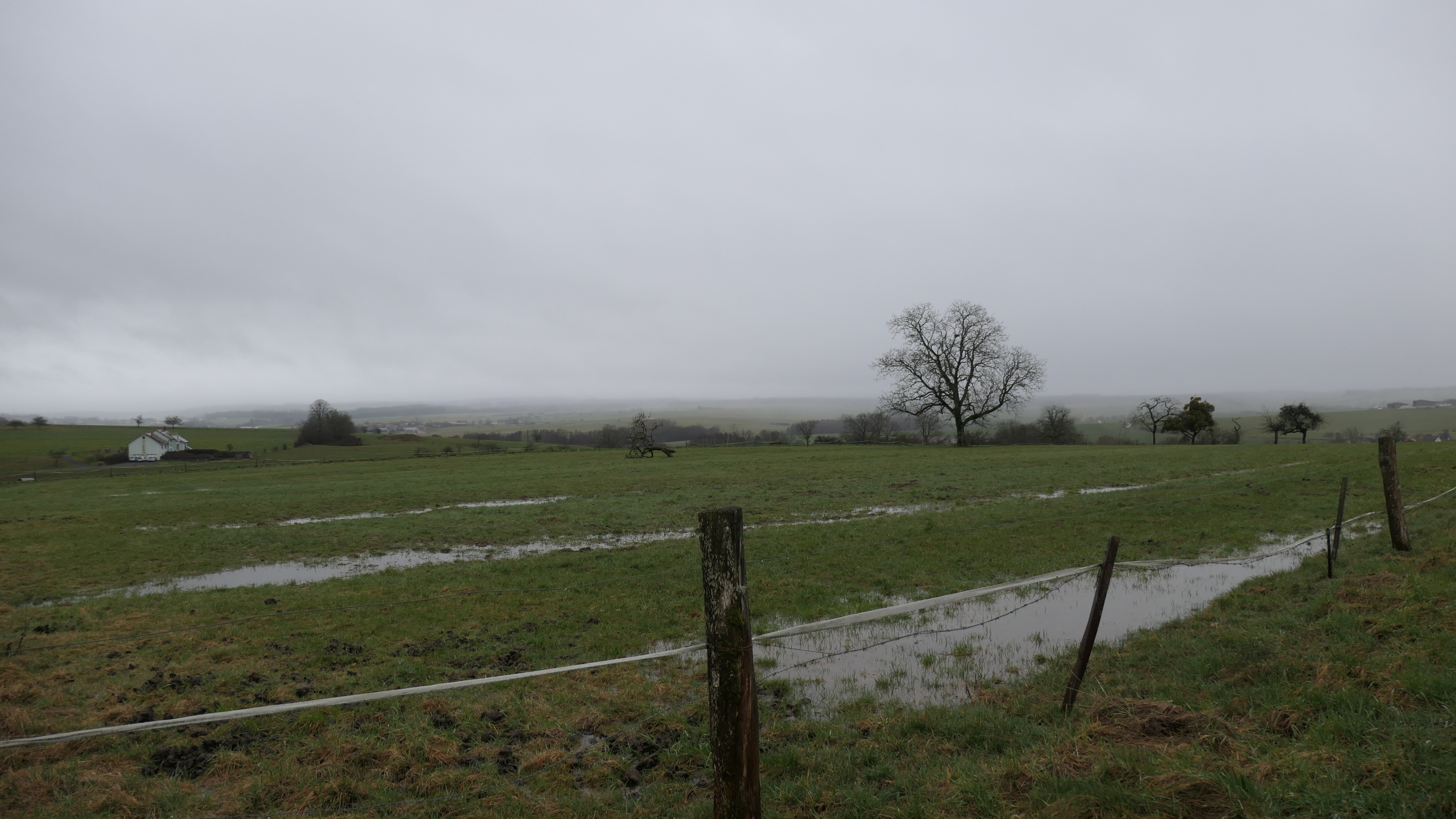 Petite accalmie pluvieuse. 14 mm depuis ce matin 6H. T 4° ,vent E-SE frais. |
