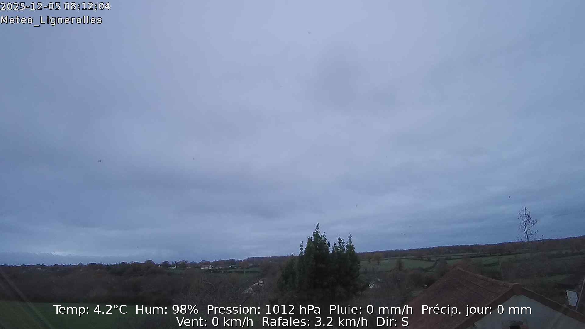 Point de rosée 2.3° humidité rel 97% pression 1008 hPa pluie du jour 0.25mm |