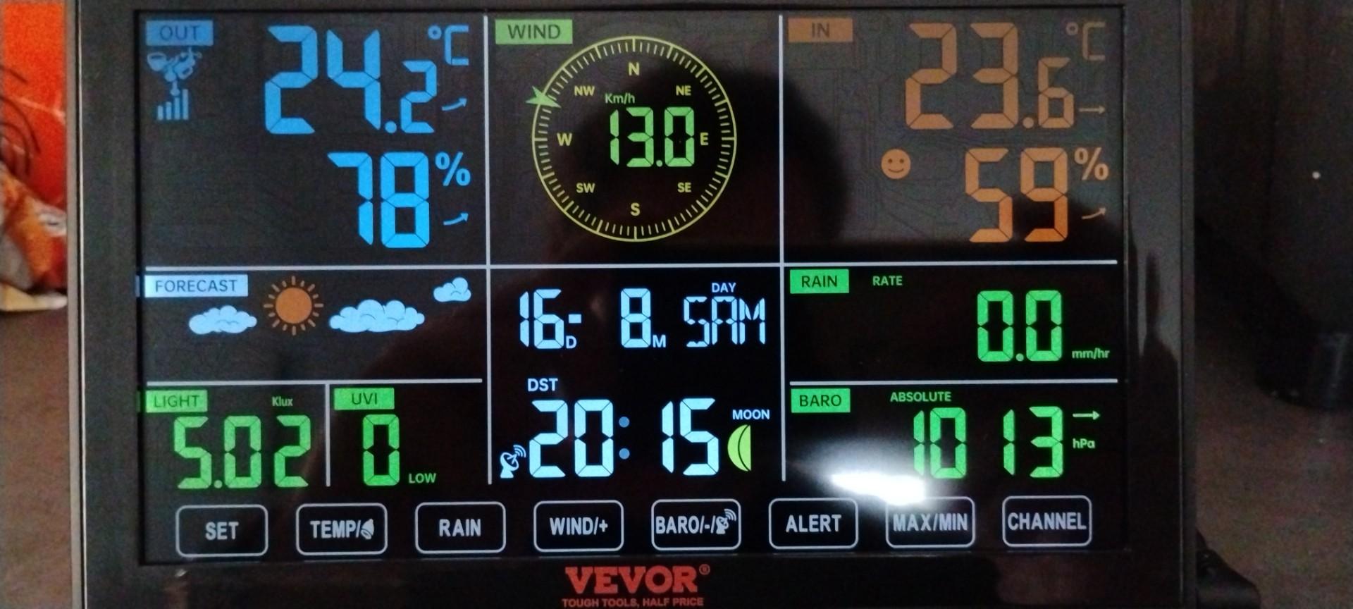 Peu nuageux, 35°C, 38% d'humidité, 1008hPa en baisse de 5 sur la journée. Léger vent <10km/h