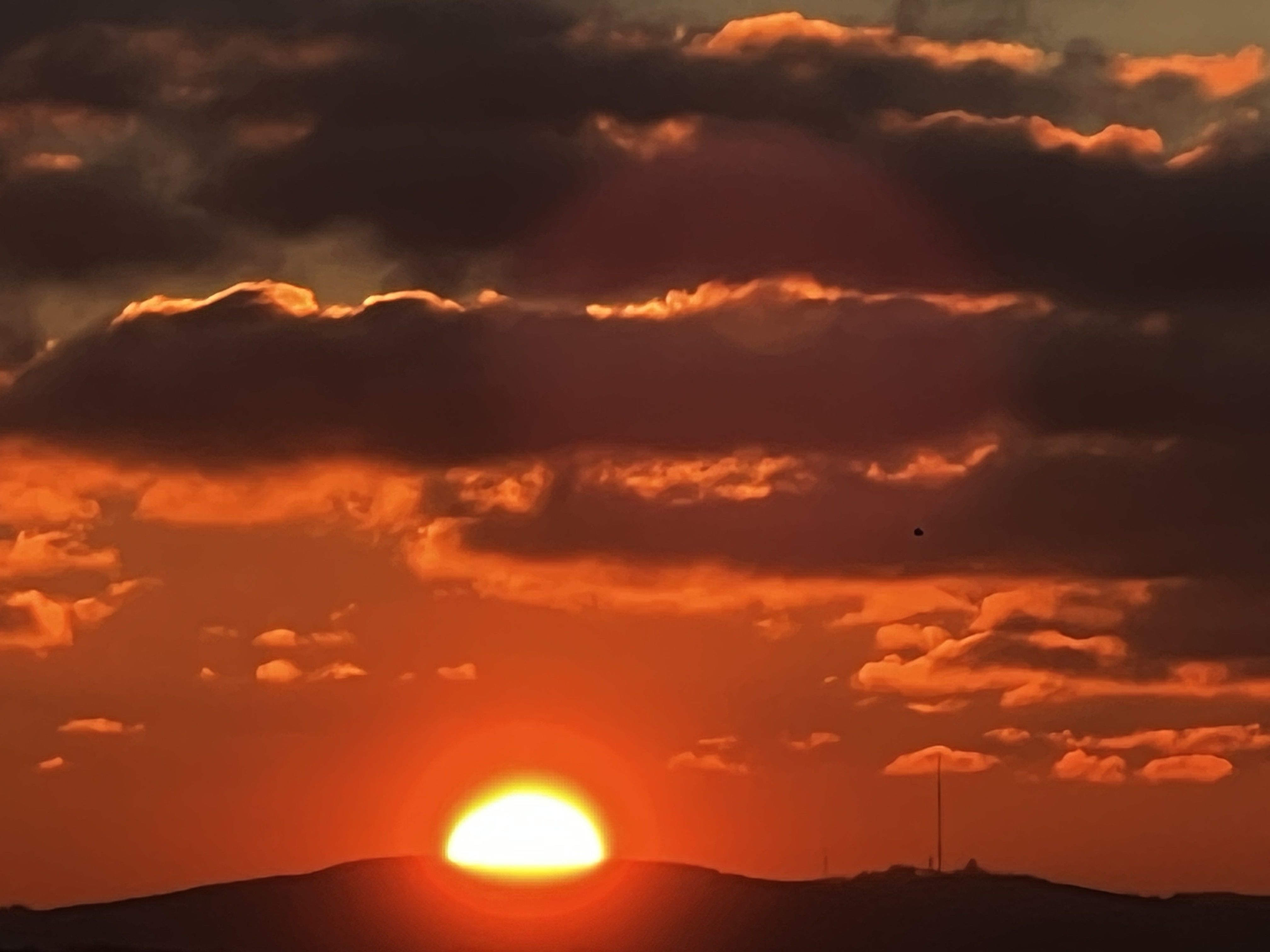 5ème jour consécutif de plein soleil. T° restant basses en journée avec léger dégel temporaire. Petite bise injectant de l'air froid et sec. Photo prise hier mardi soir avec l'invasion de nuages venus du Nord.