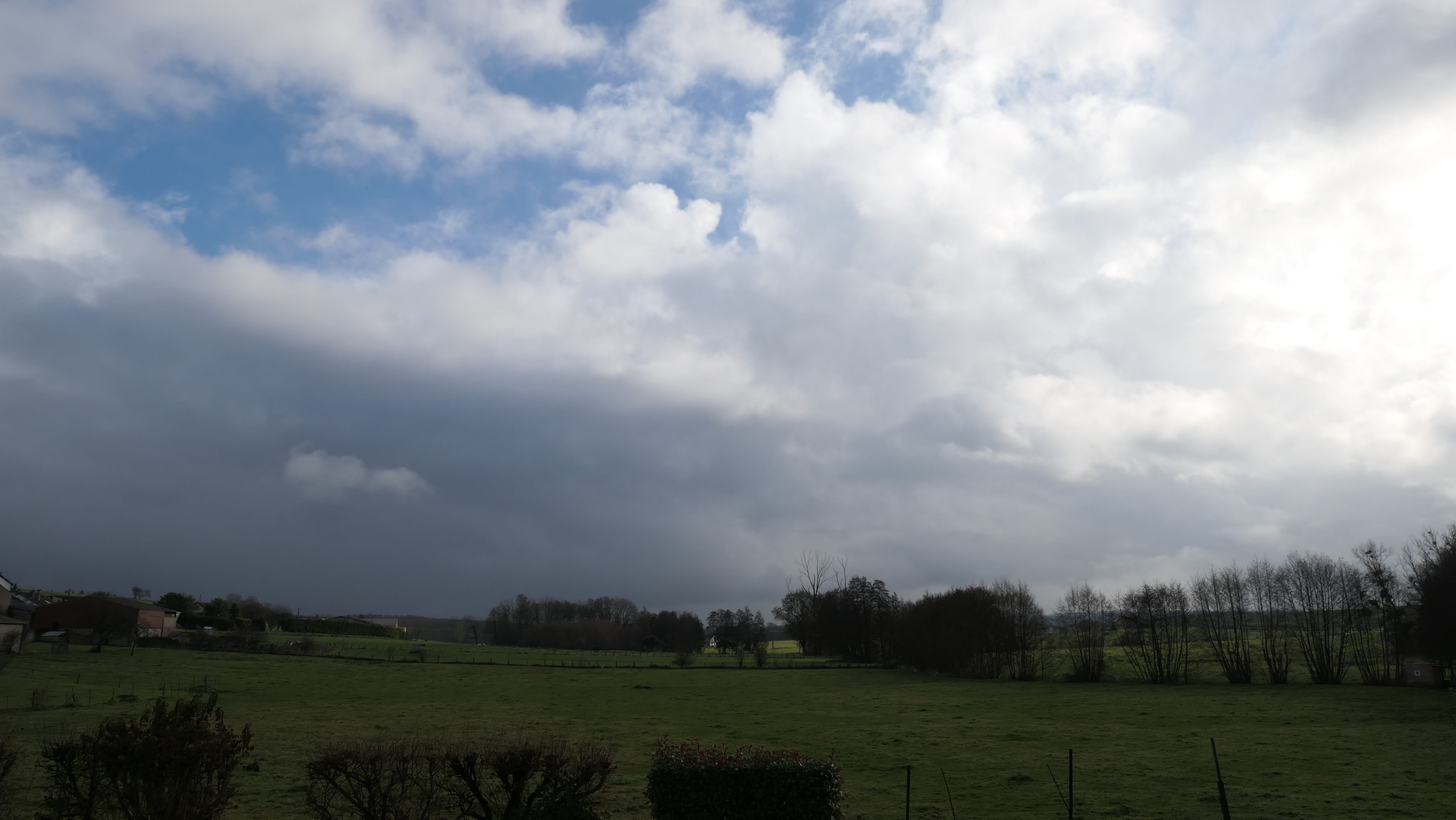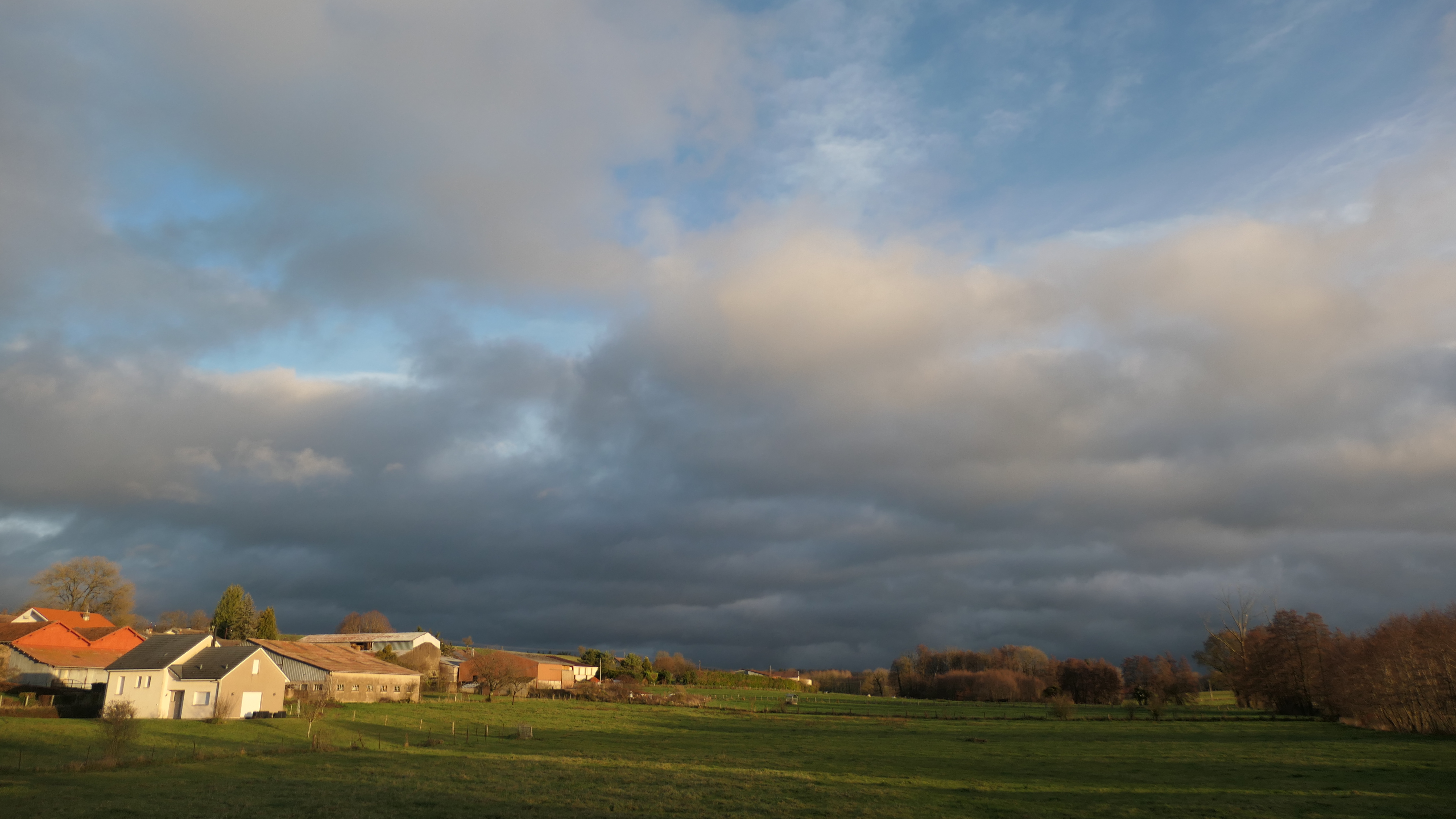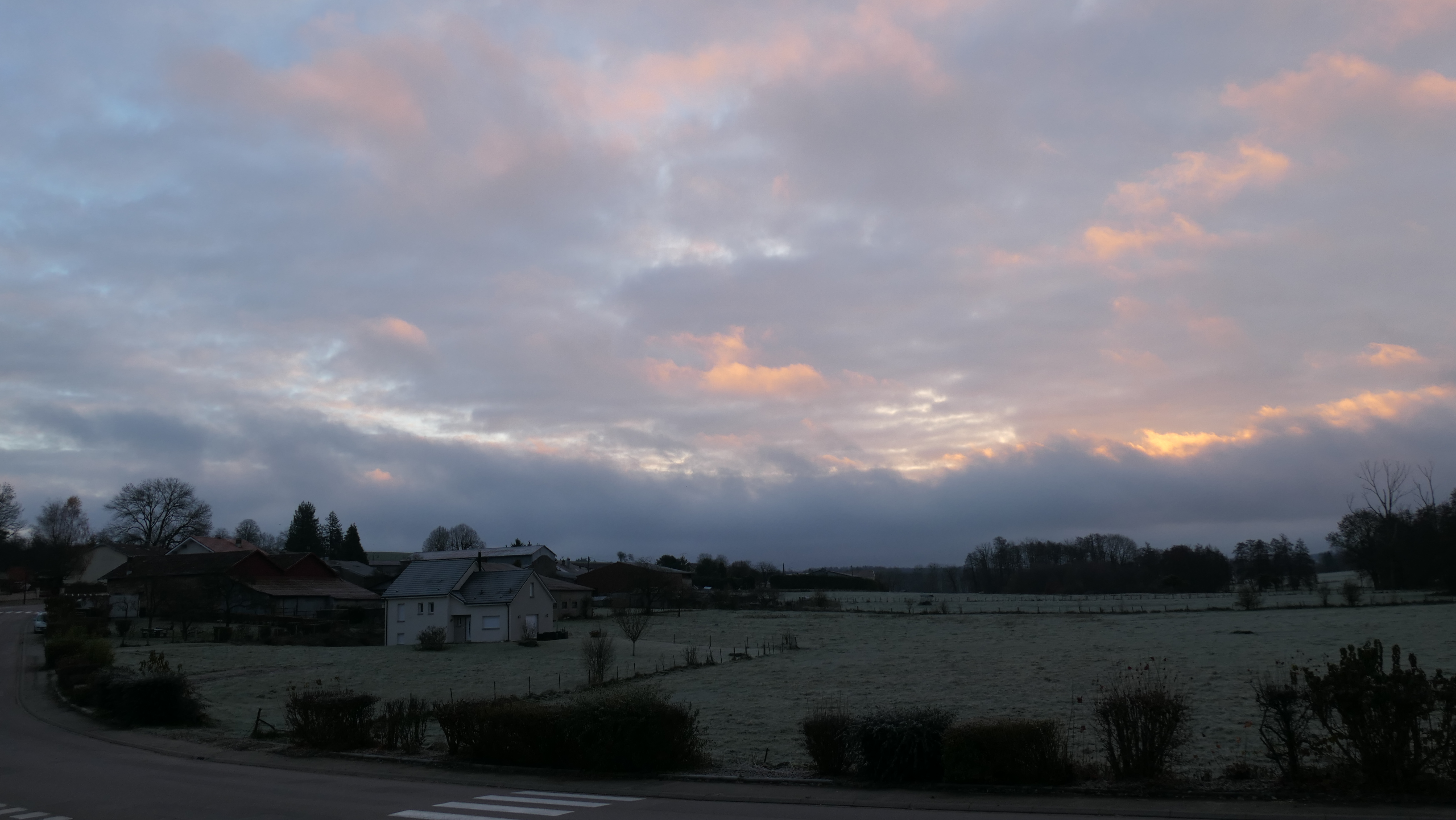 Les éclaircies arrivent. Un peu de neige cette nuit qui tenait juste sur les toits, plus rien maintenant. T 3°.