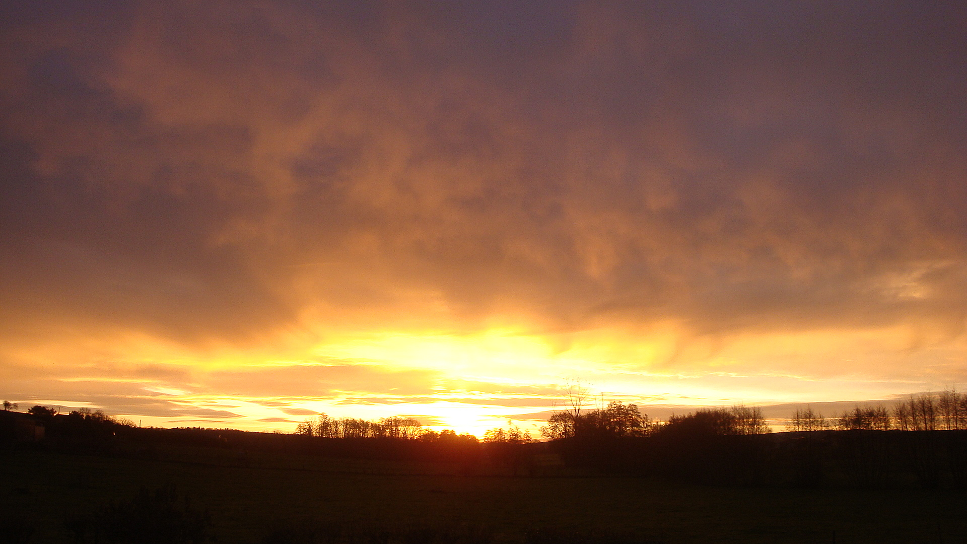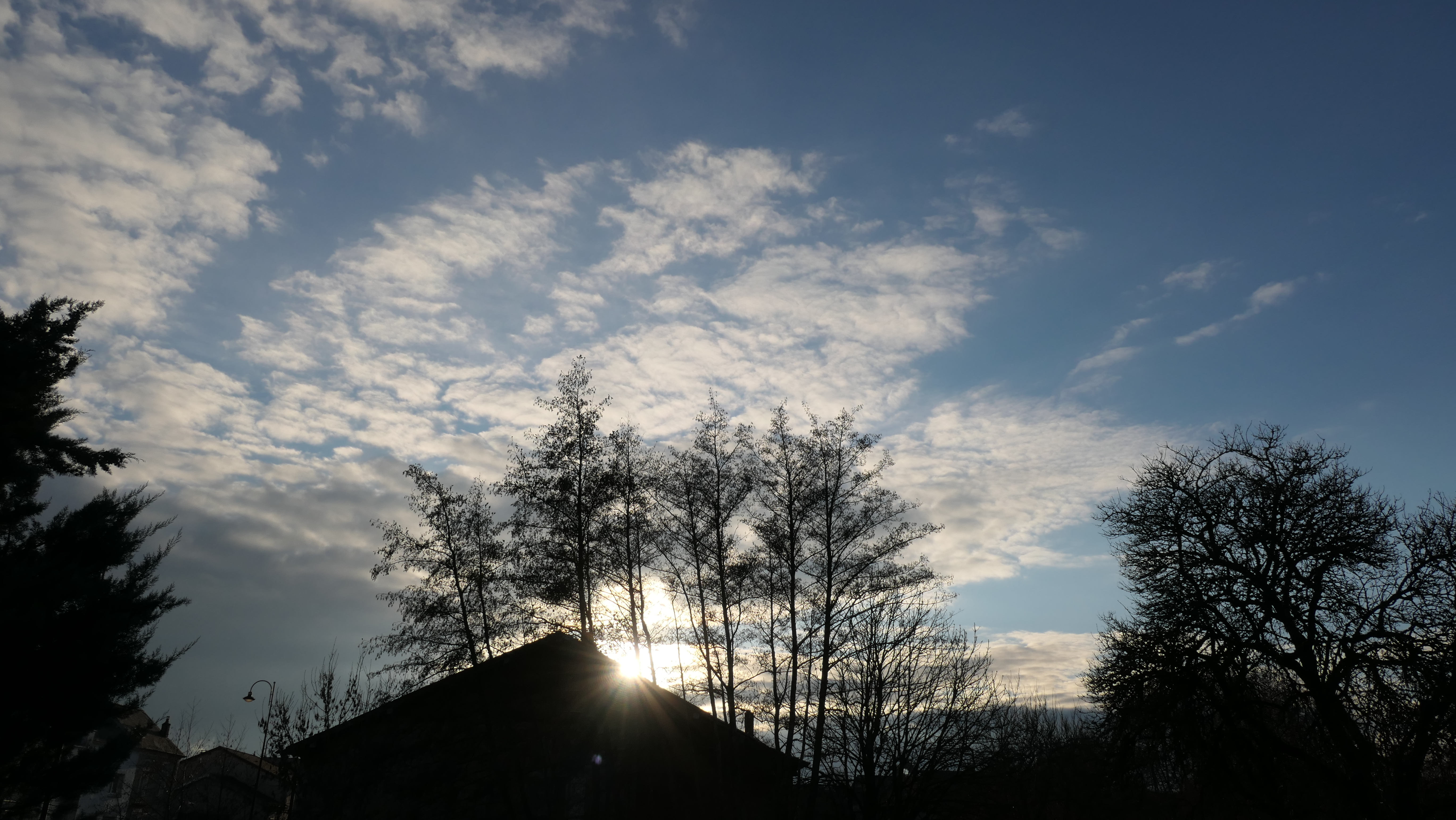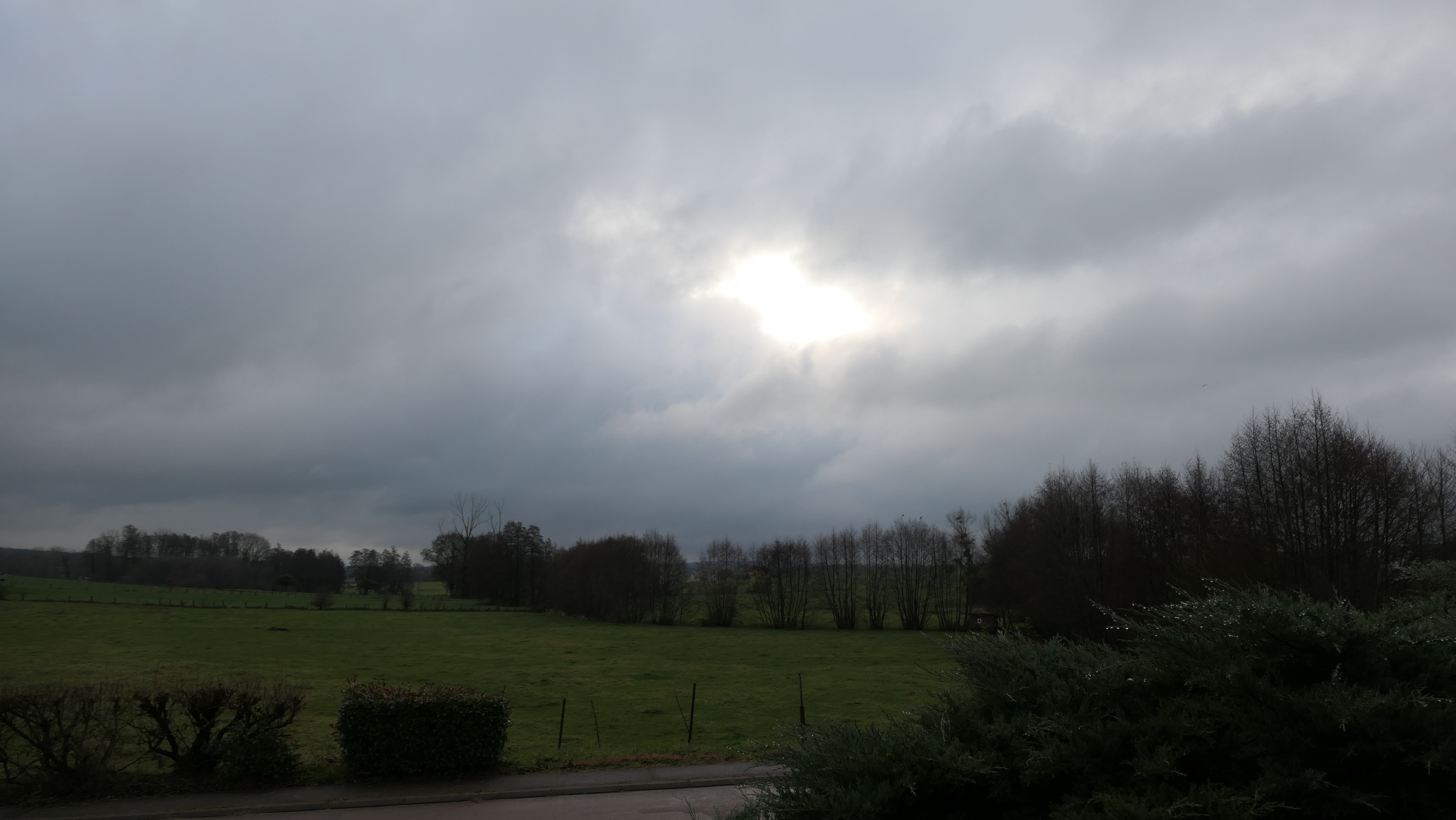 Les éclaircies arrivent. Un peu de neige cette nuit qui tenait juste sur les toits, plus rien maintenant. T 3°.