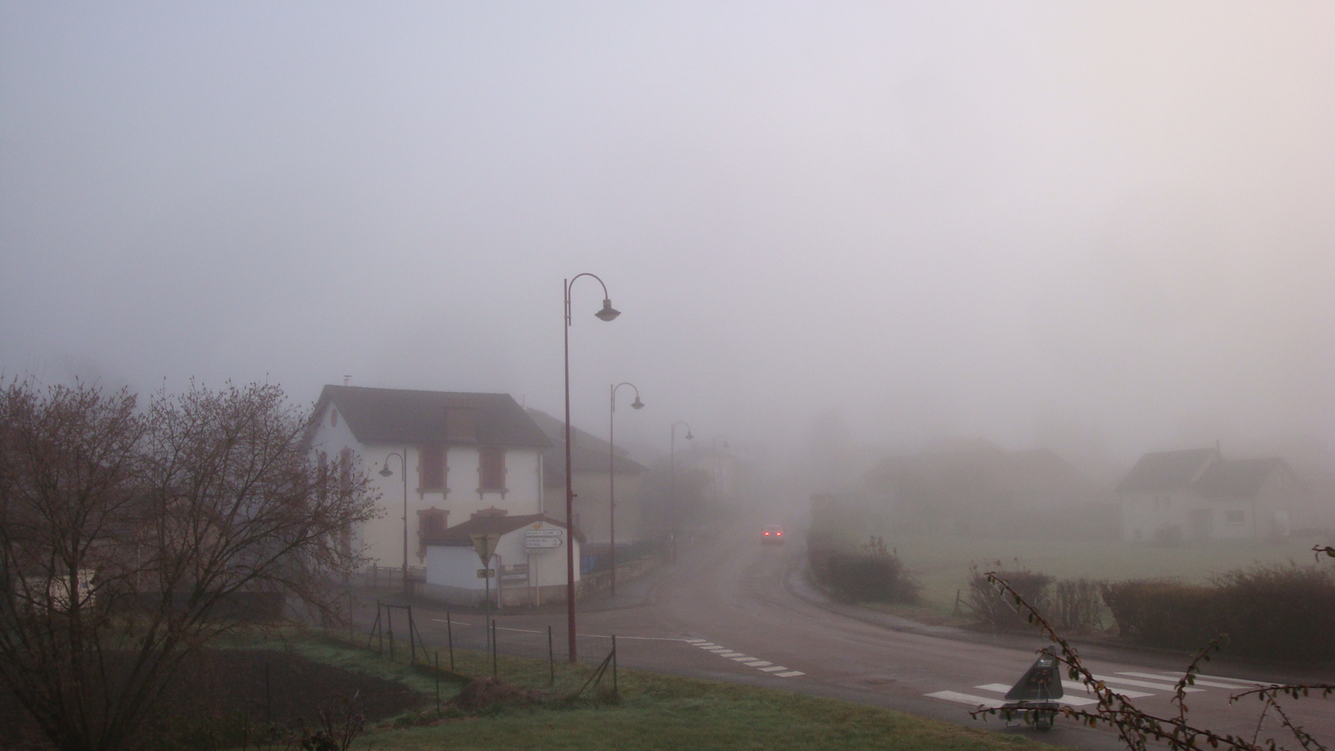 Il faut aller sur les hauteurs du village pour apercevoir le soleil qui tente de percer le brouillard. Température proche de 0°.