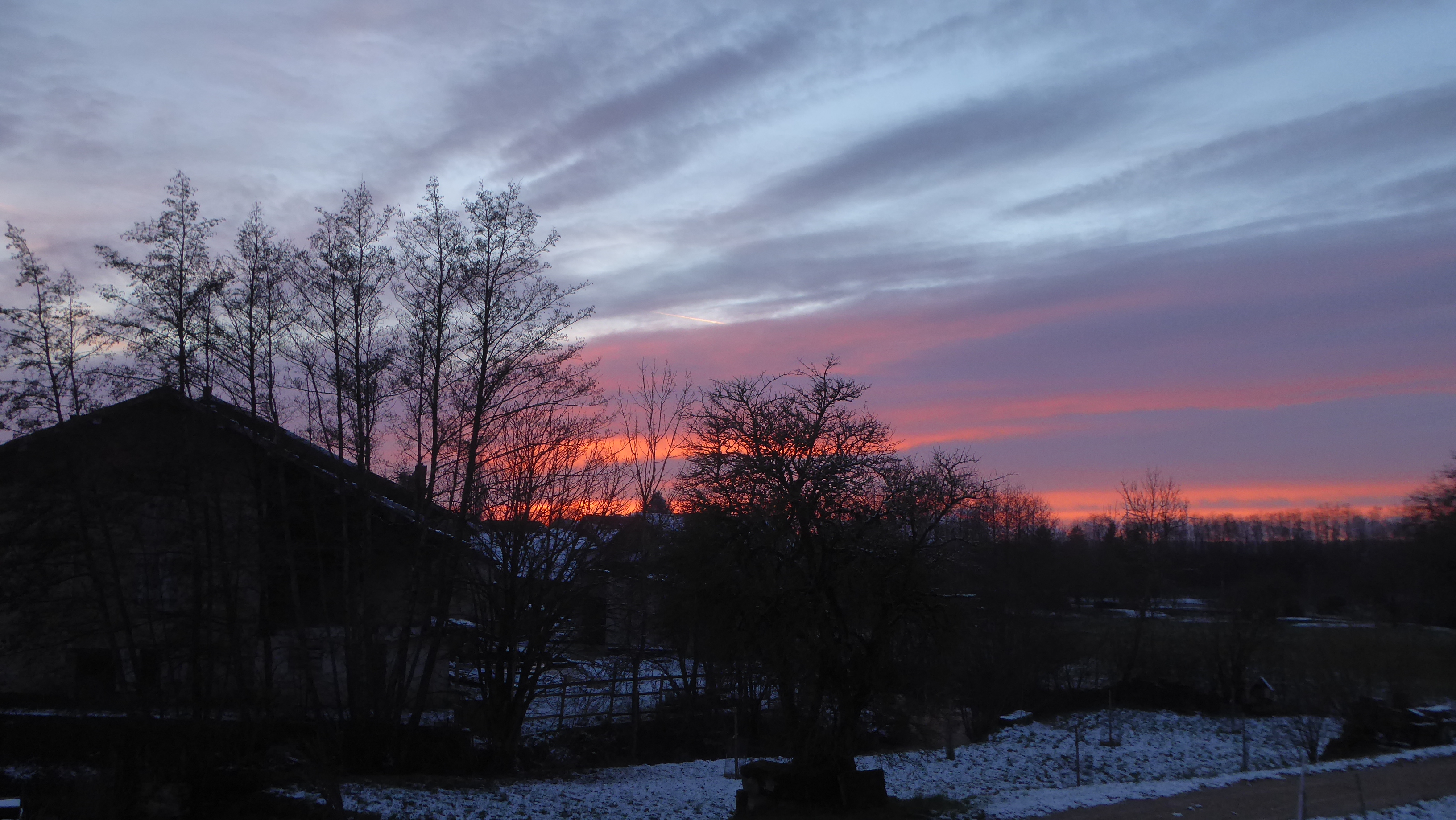 Ciel rougeoyant au coucher de soleil. T 1°