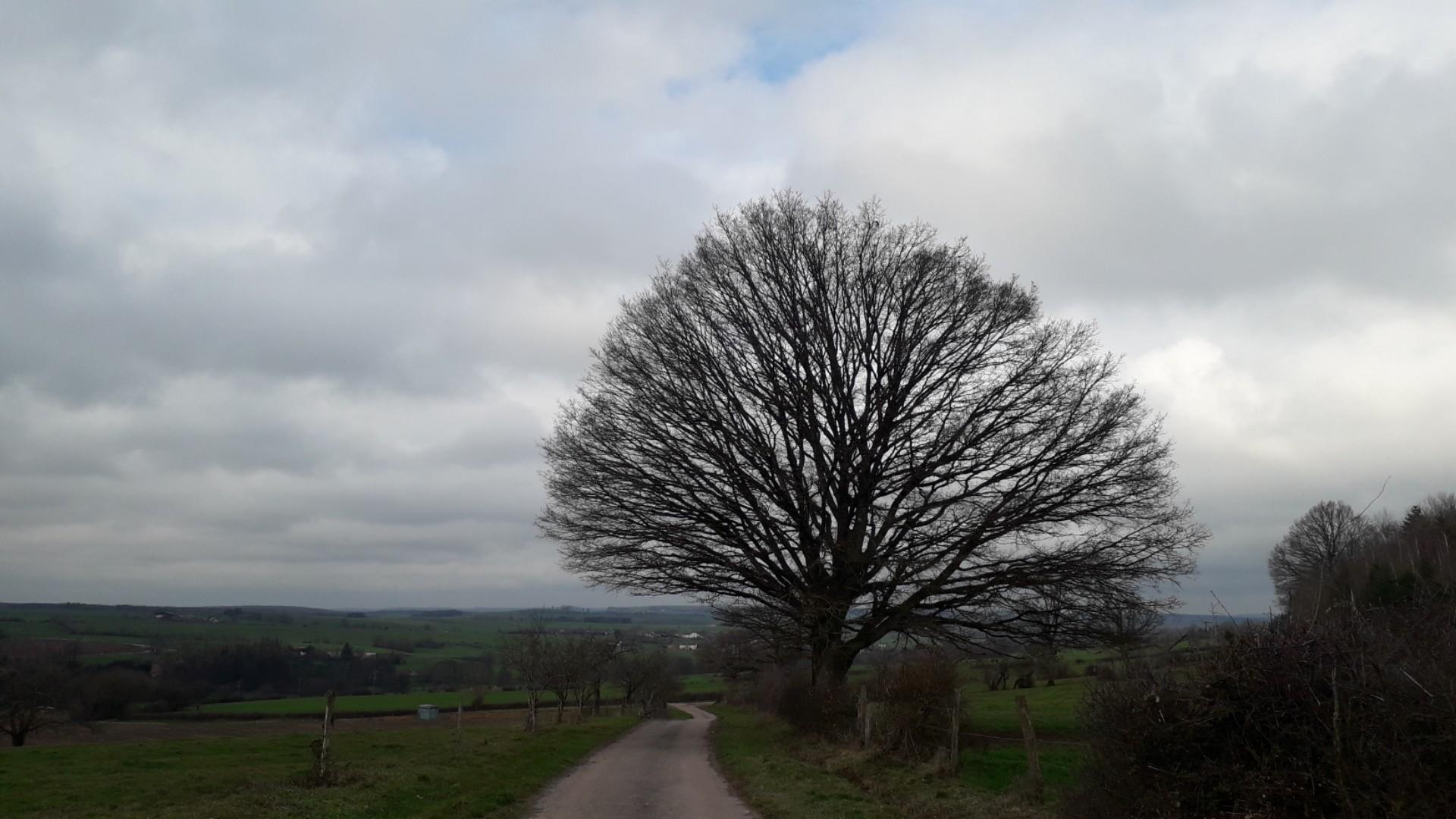 Gris, triste et froid, plus aucune trace de neige ici. T -1° . Léger vent de NE.
