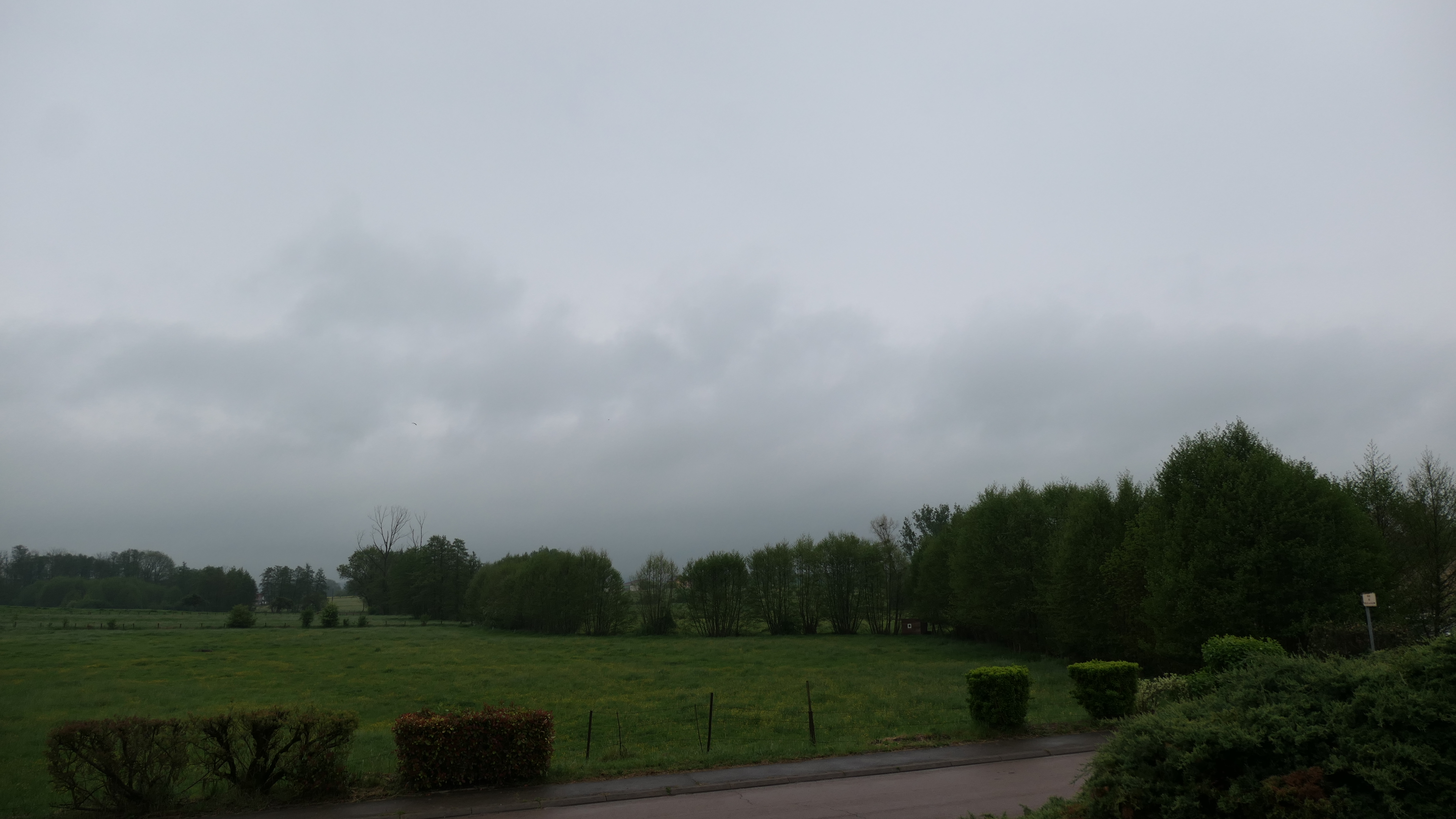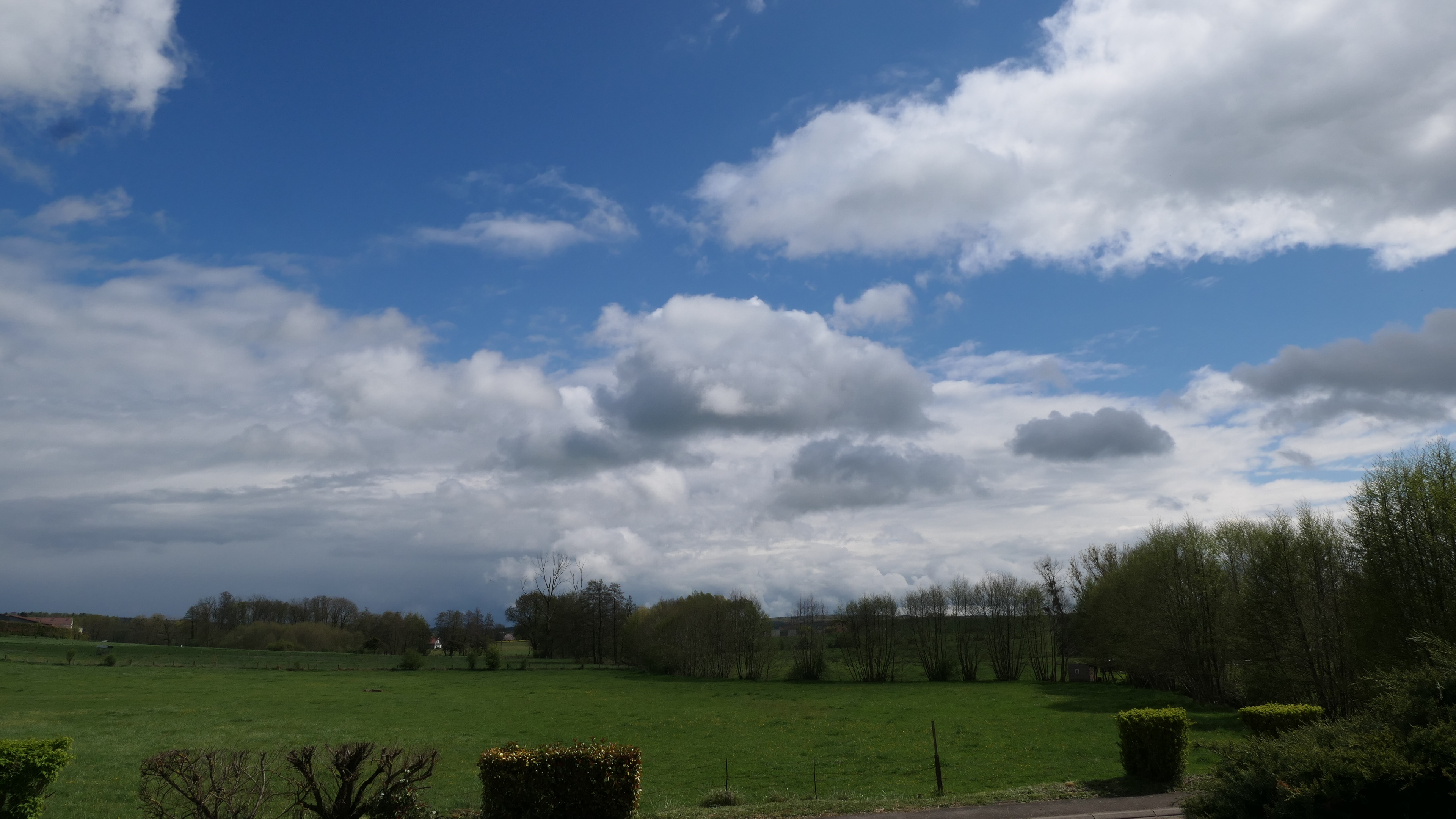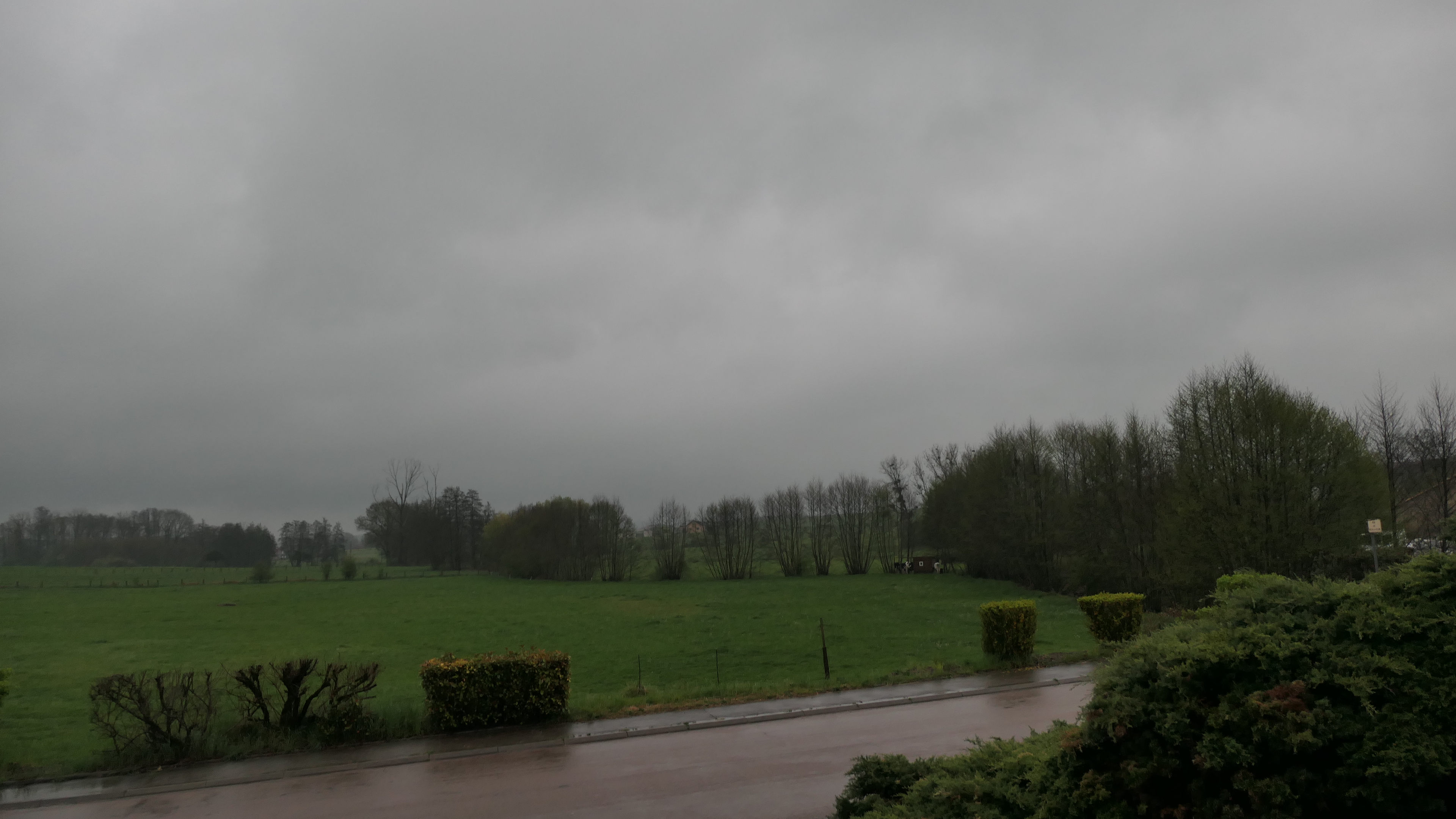 Ciel couvert. Des orages hier en début de soirée mais plutôt électriques. 7mm de pluie en 12h. T 11°.