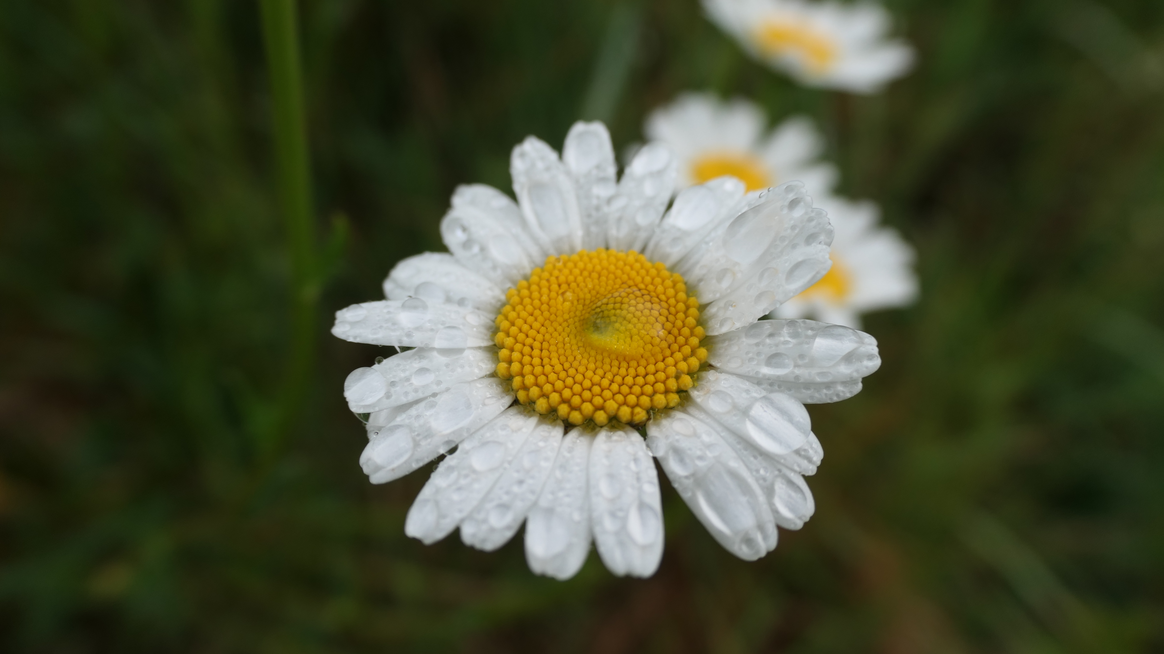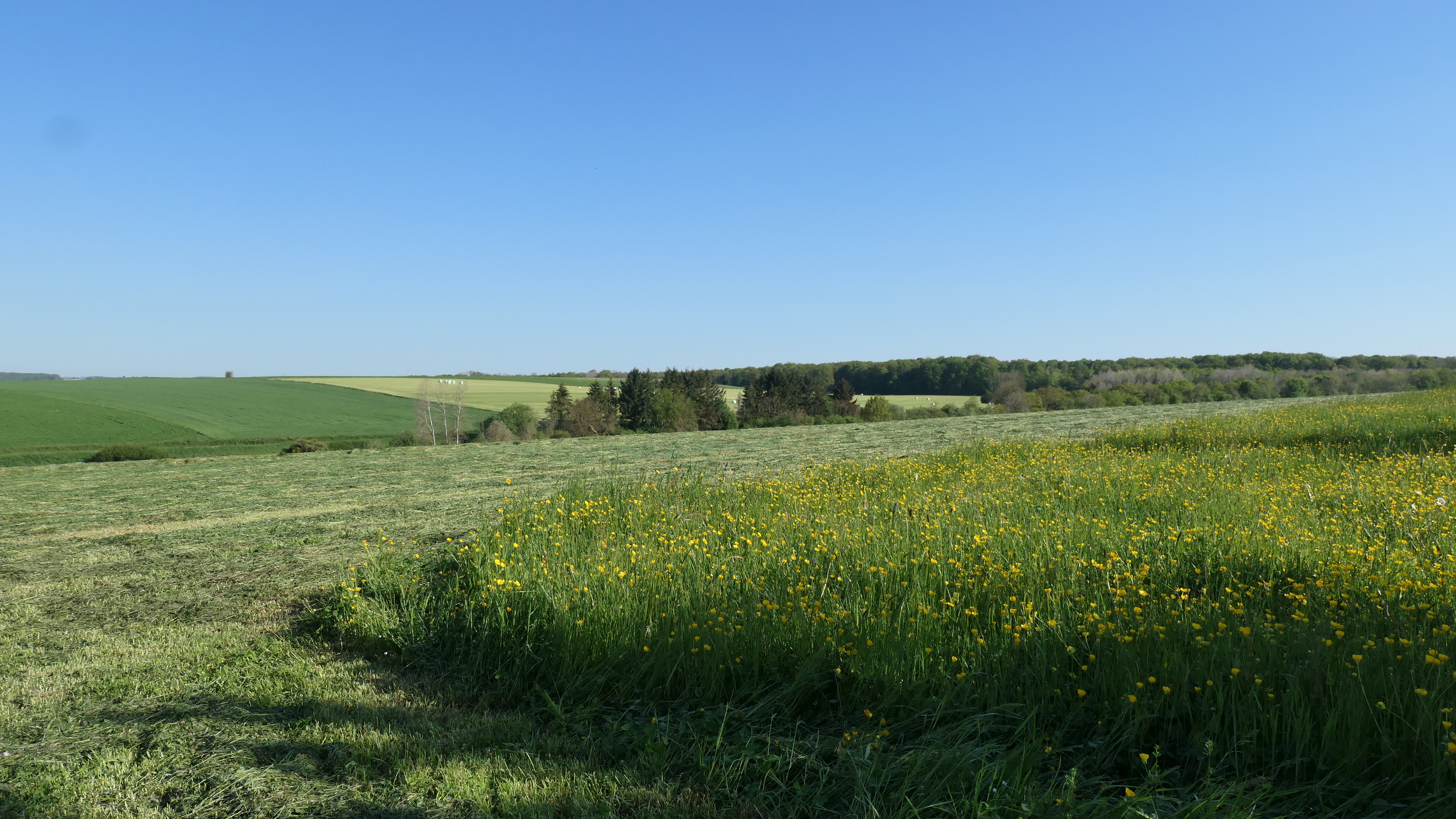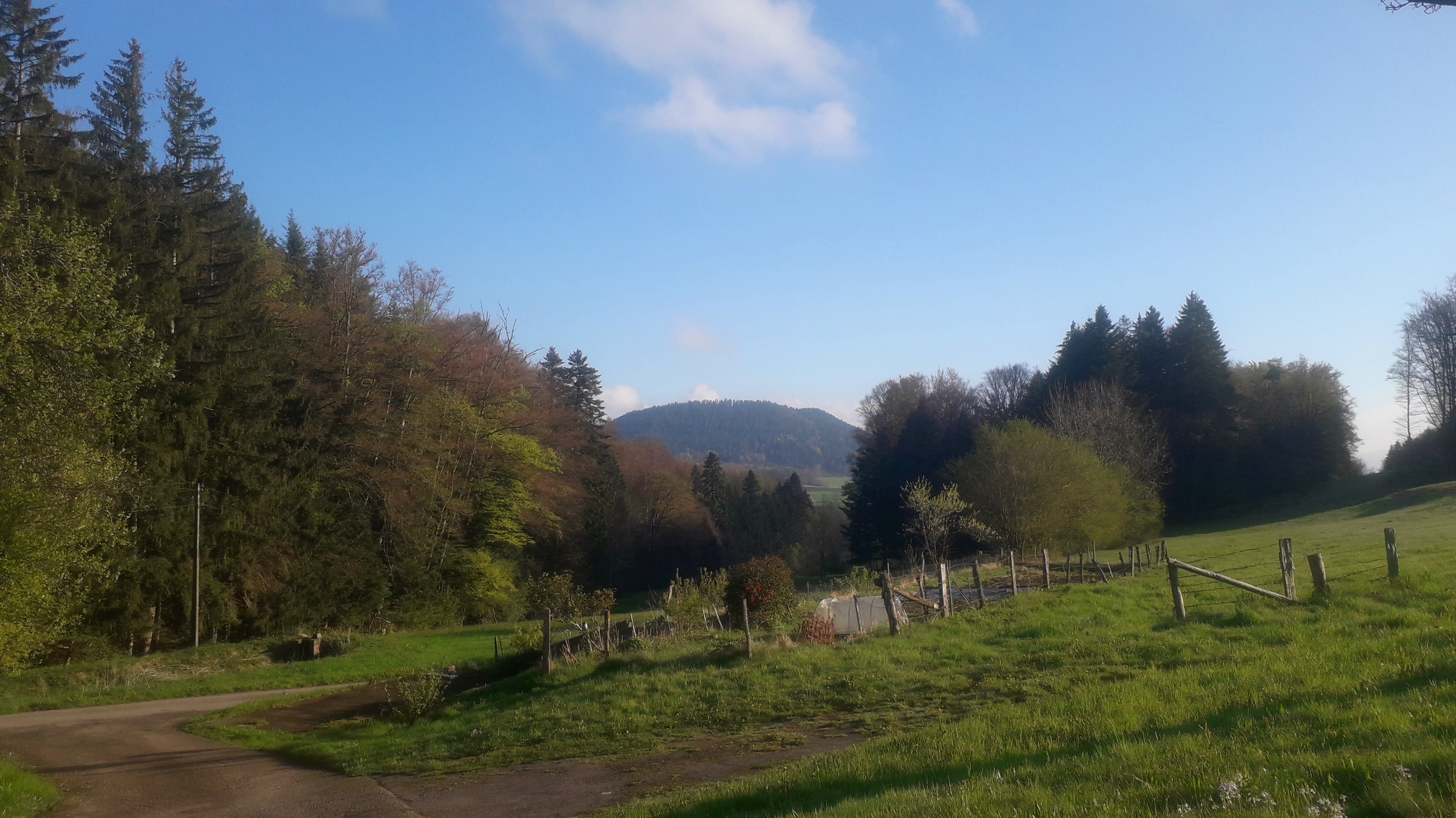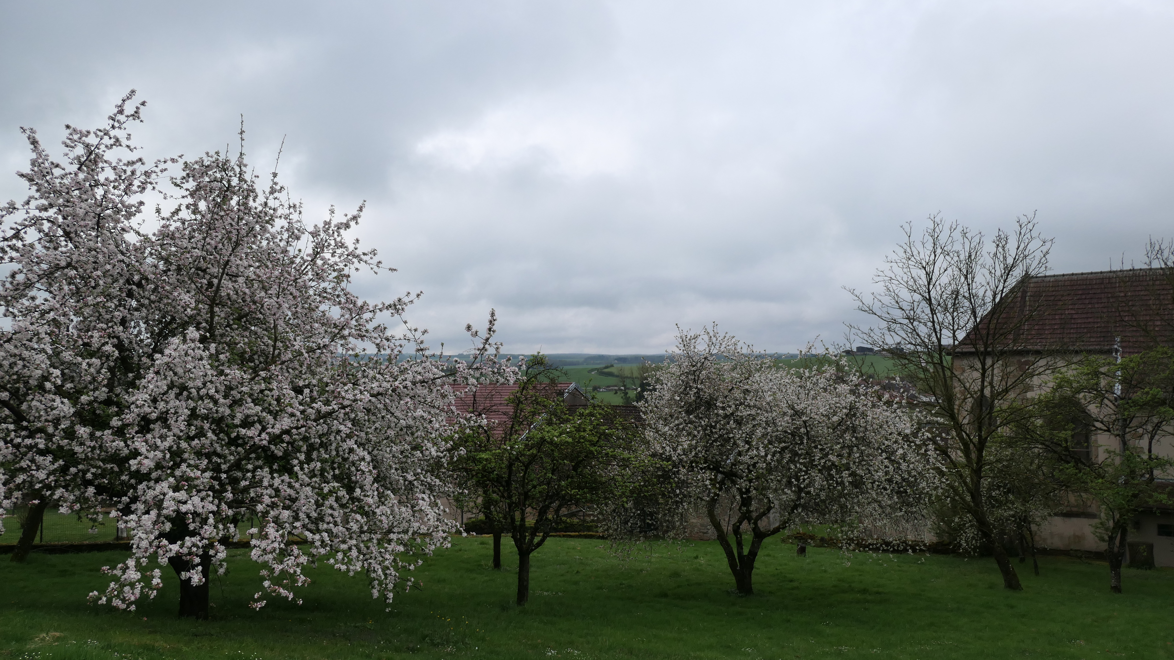 Il ne pleut plus aujourd'hui. Les 1eres marguerites fleurissent et l'herbe pousse après ces 2 journées bien pluvieuses. Ciel couvert. T 7°. Vent de N.
