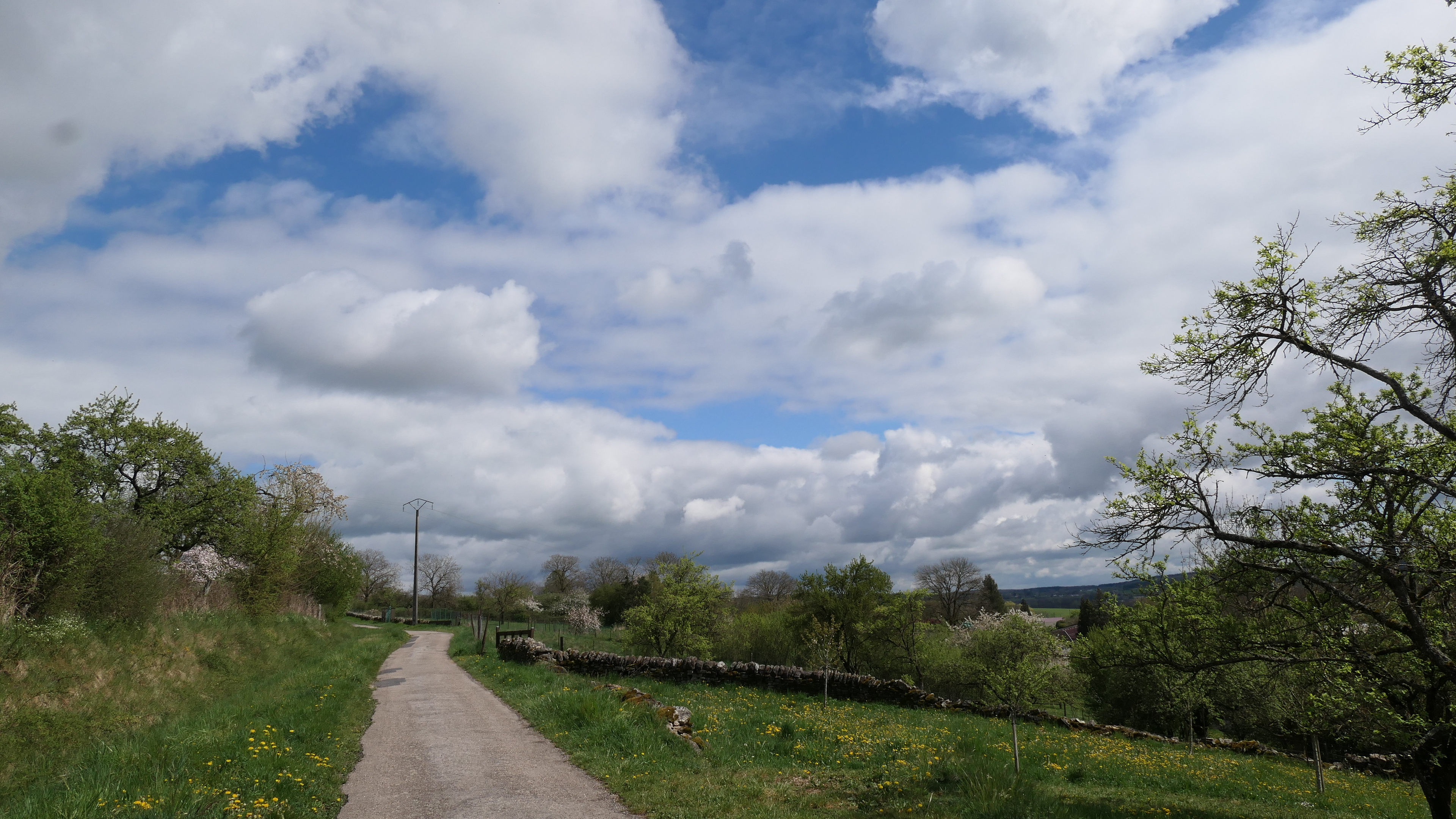 Très beau temps quasi estival. Des cumulus s'installent. Vent de N-NE. T 24°.
