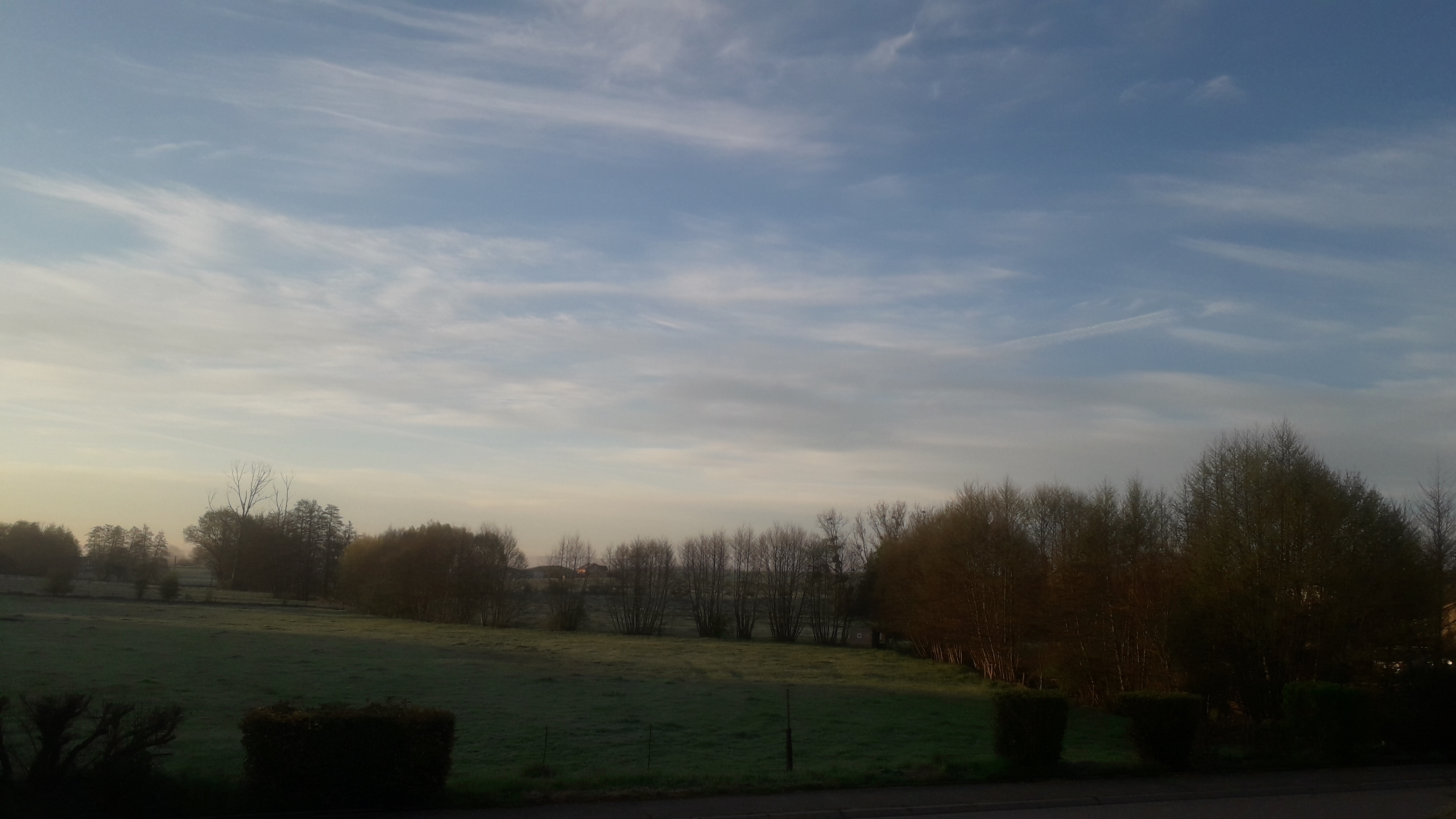 Ciel voilé avec des nuages d'altitude. Bien frais avec 1°.Le soleil est de retour.