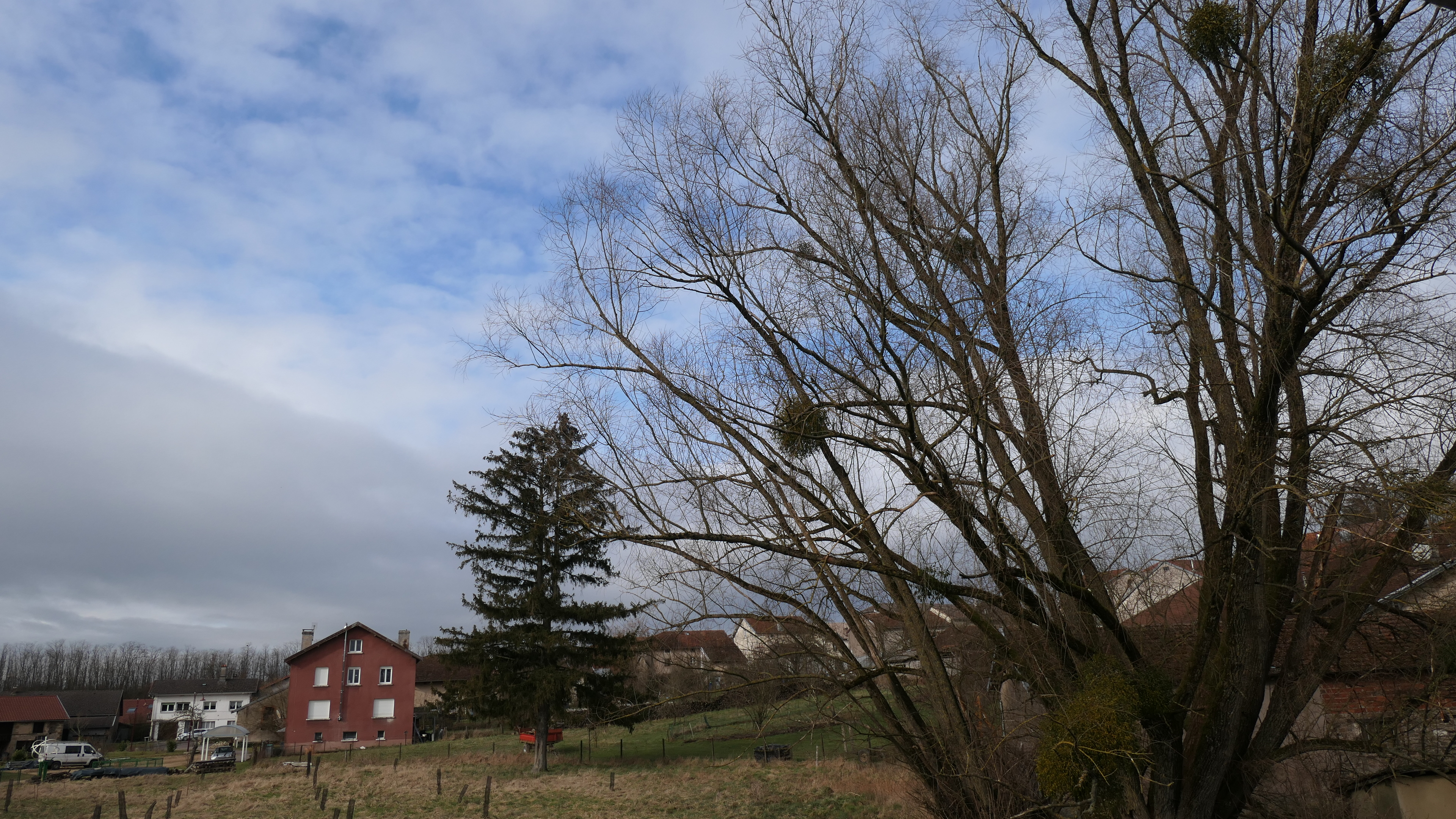 Petite parenthèse bleutée dans un ciel très nuageux. T 6°. Vent de SO.