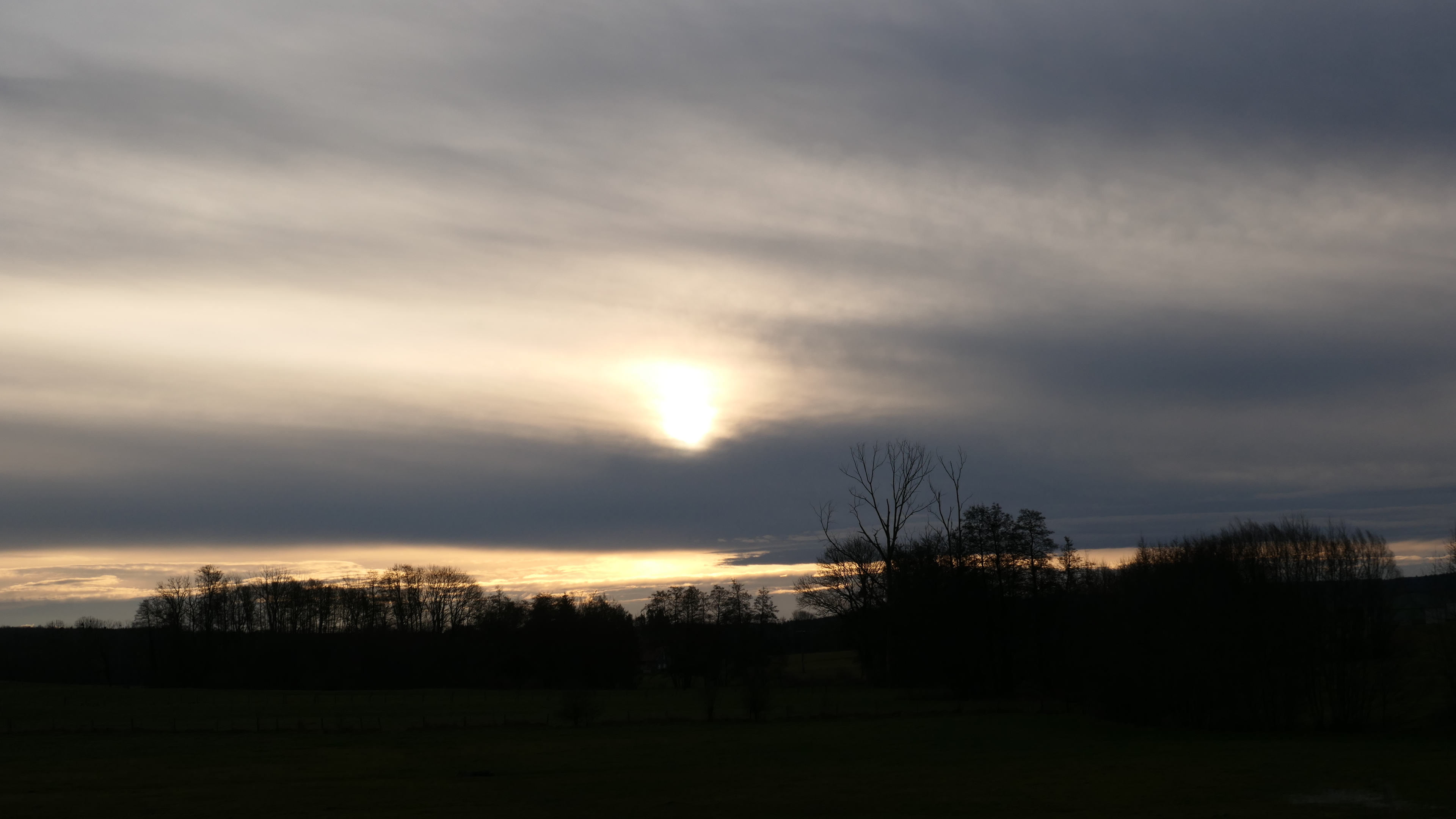 Epaisse couche nuageuse qui laisse passer le soleil de temps à autre.