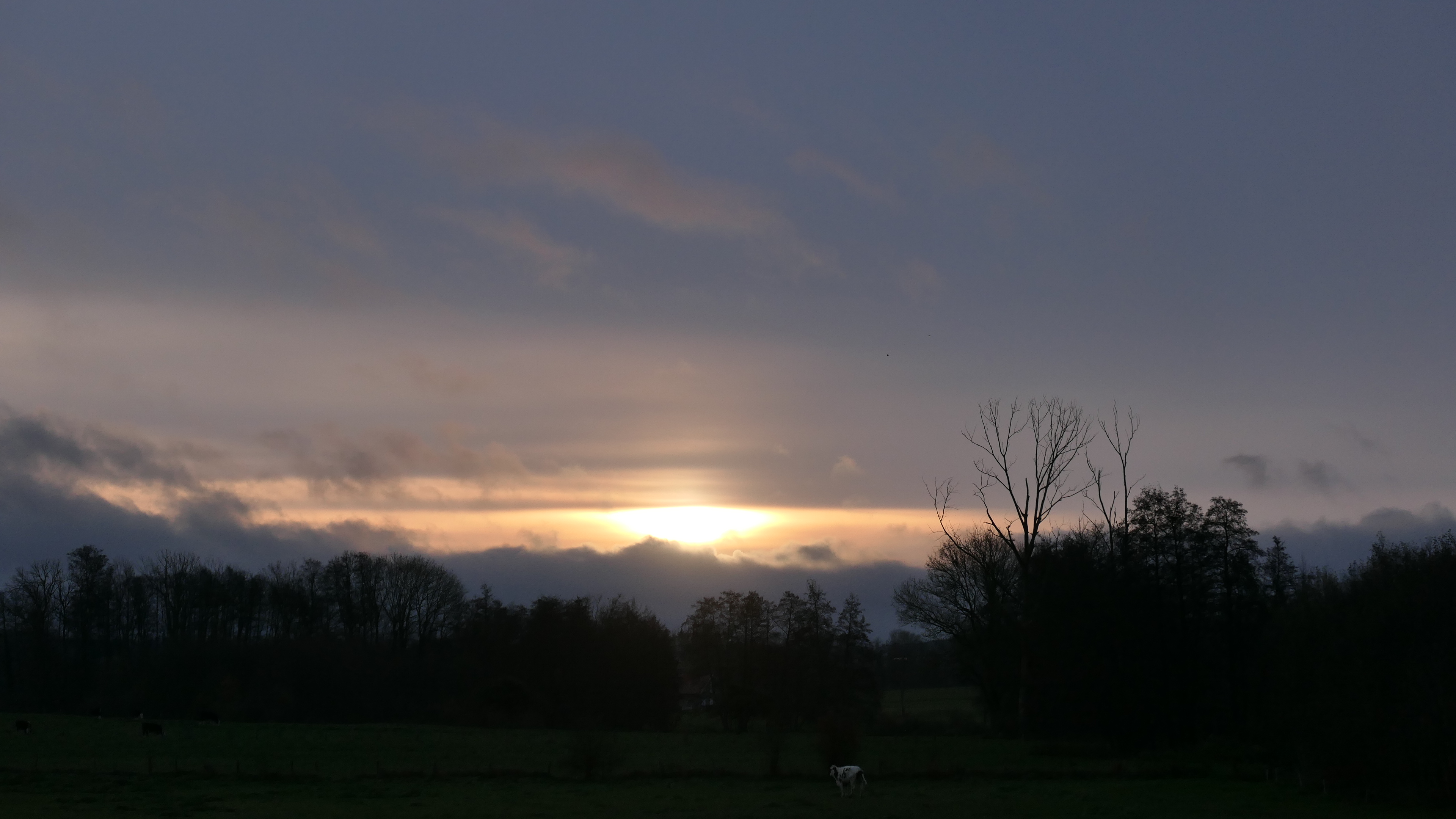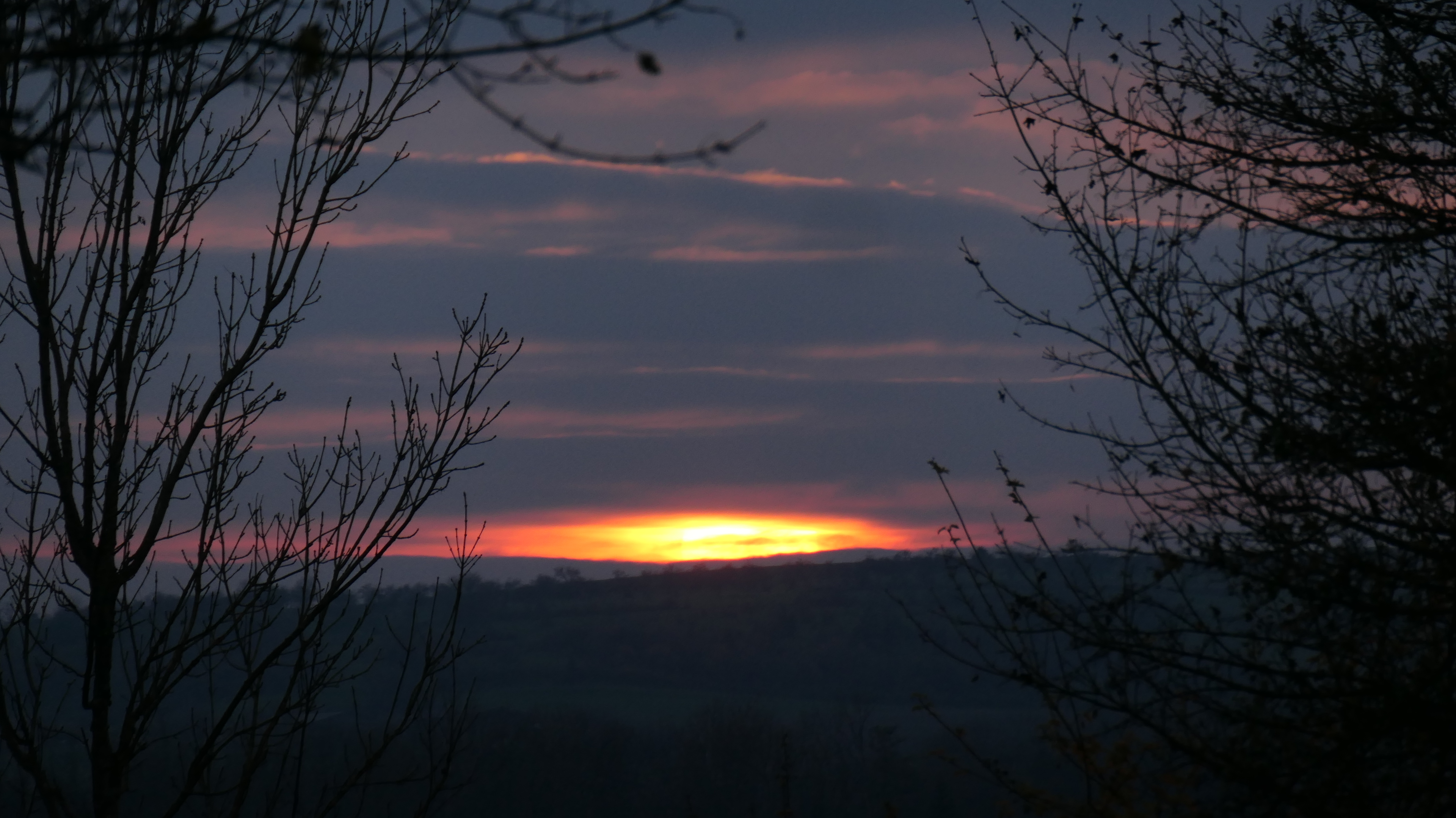 Ciel couvert, juste cet éclat rapide du soleil en direction de l'Est. T 1°