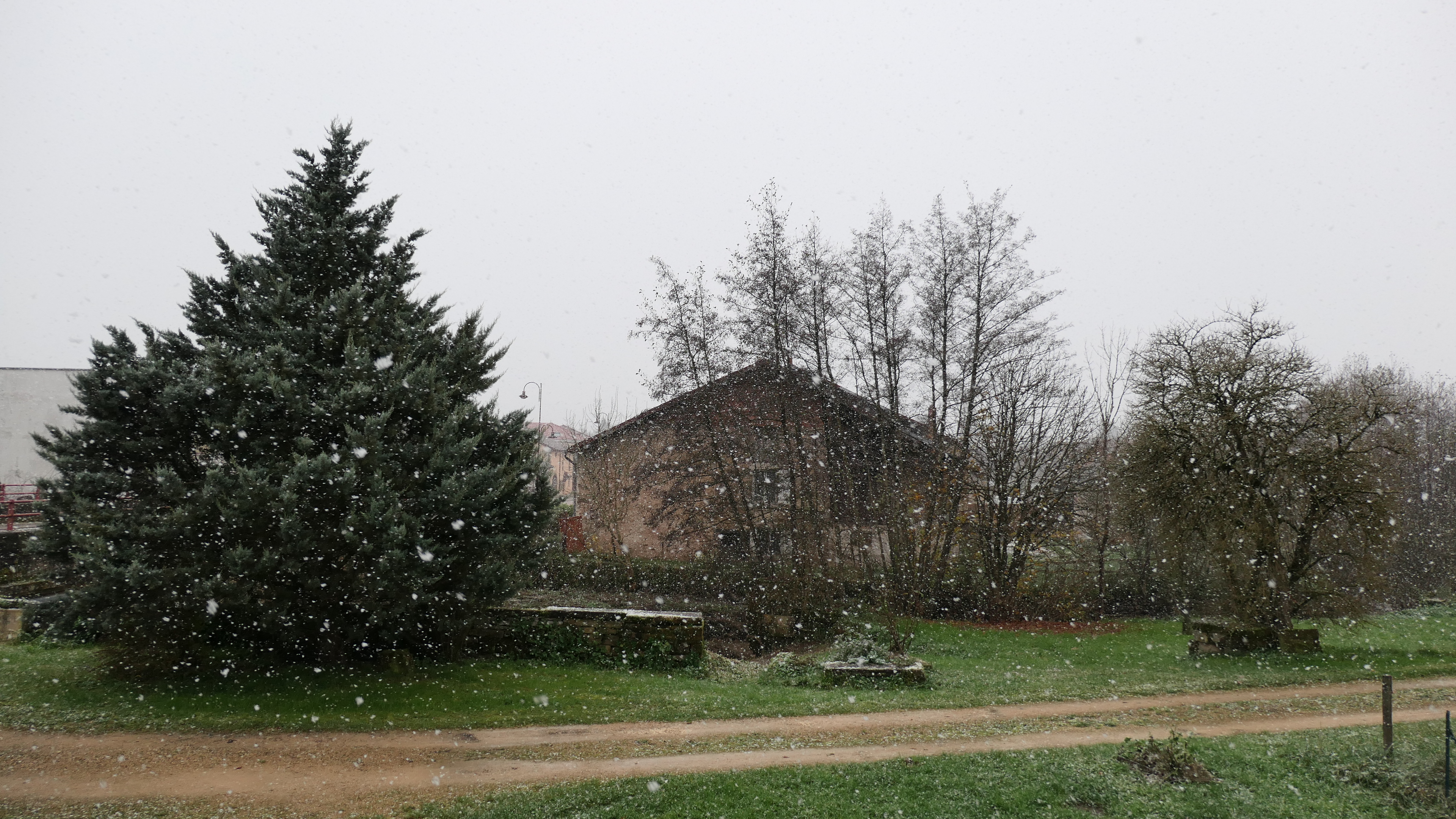 La neige arrive avec de gros flocons.