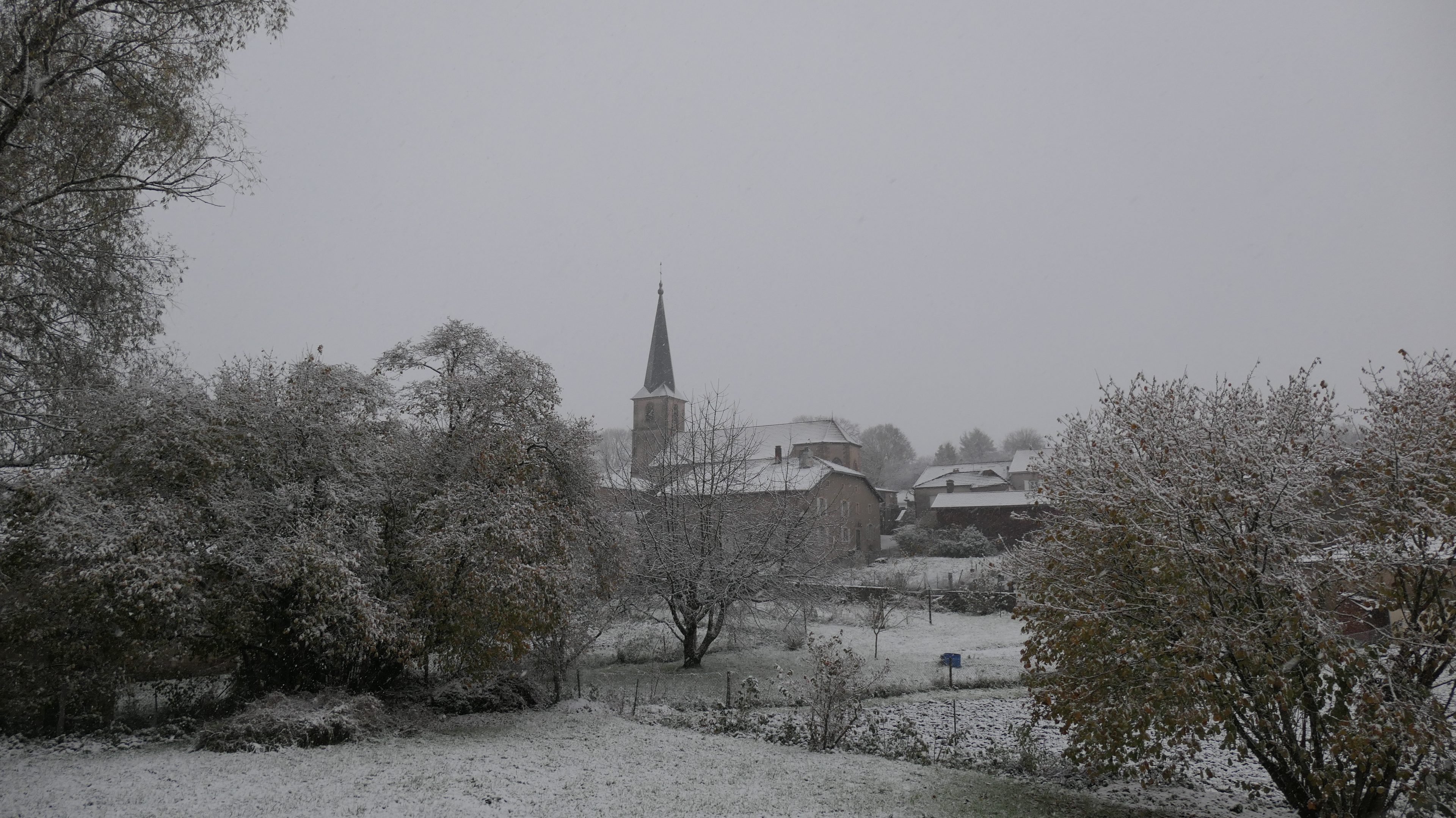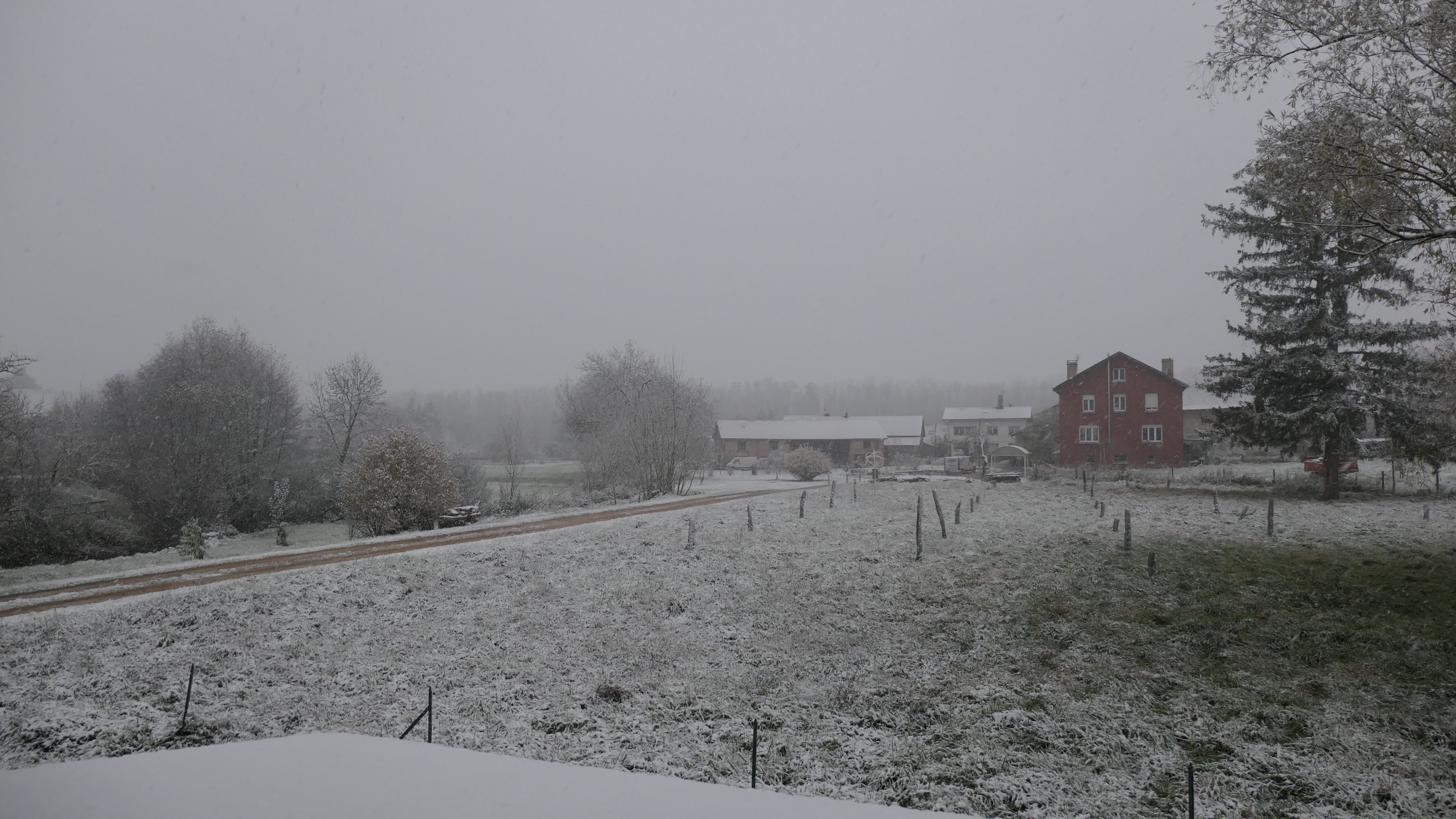 Cela fait 1h30 qu'il neige, les sols blanchissent mais pas les routes principales pour le moment. T 1°.