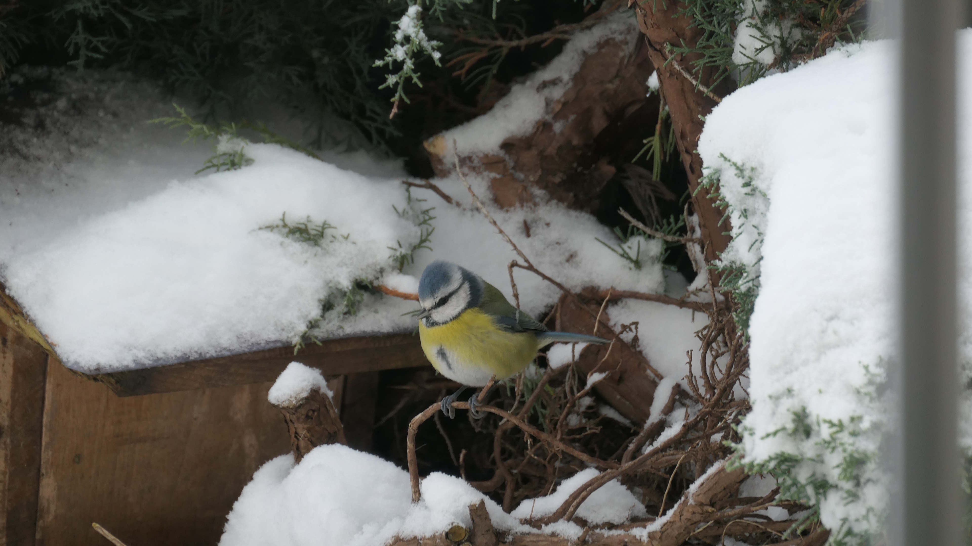 Température toujours négative -3°. Les mésanges apprécient la mangeoire.
