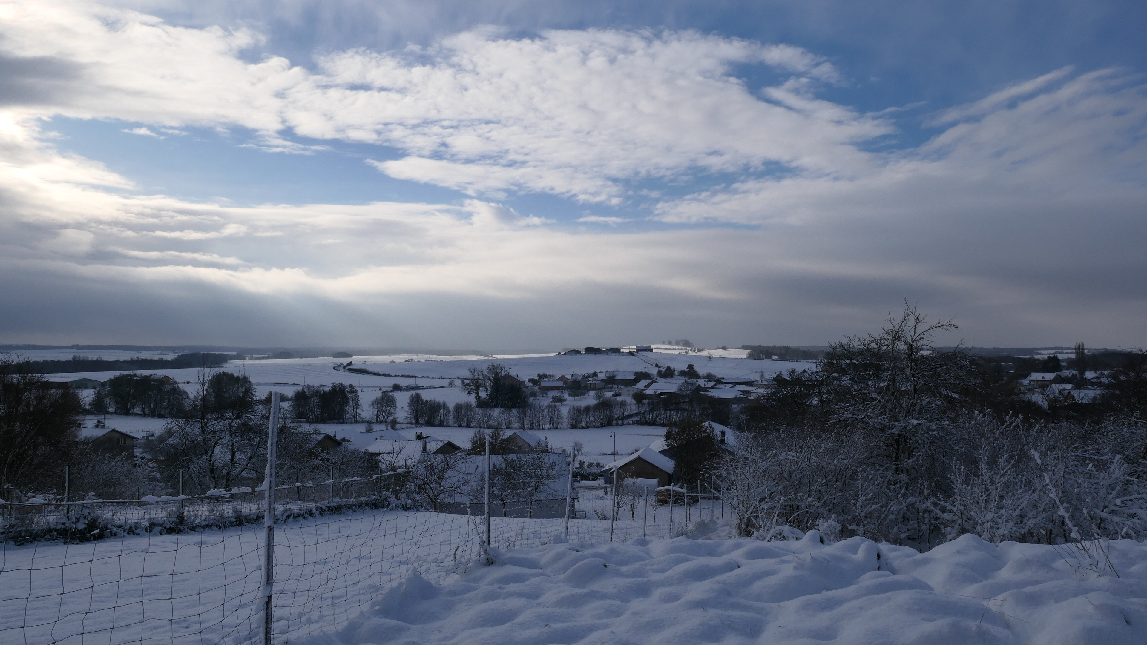 Ciel couvert, juste cet éclat rapide du soleil en direction de l'Est. T 1°