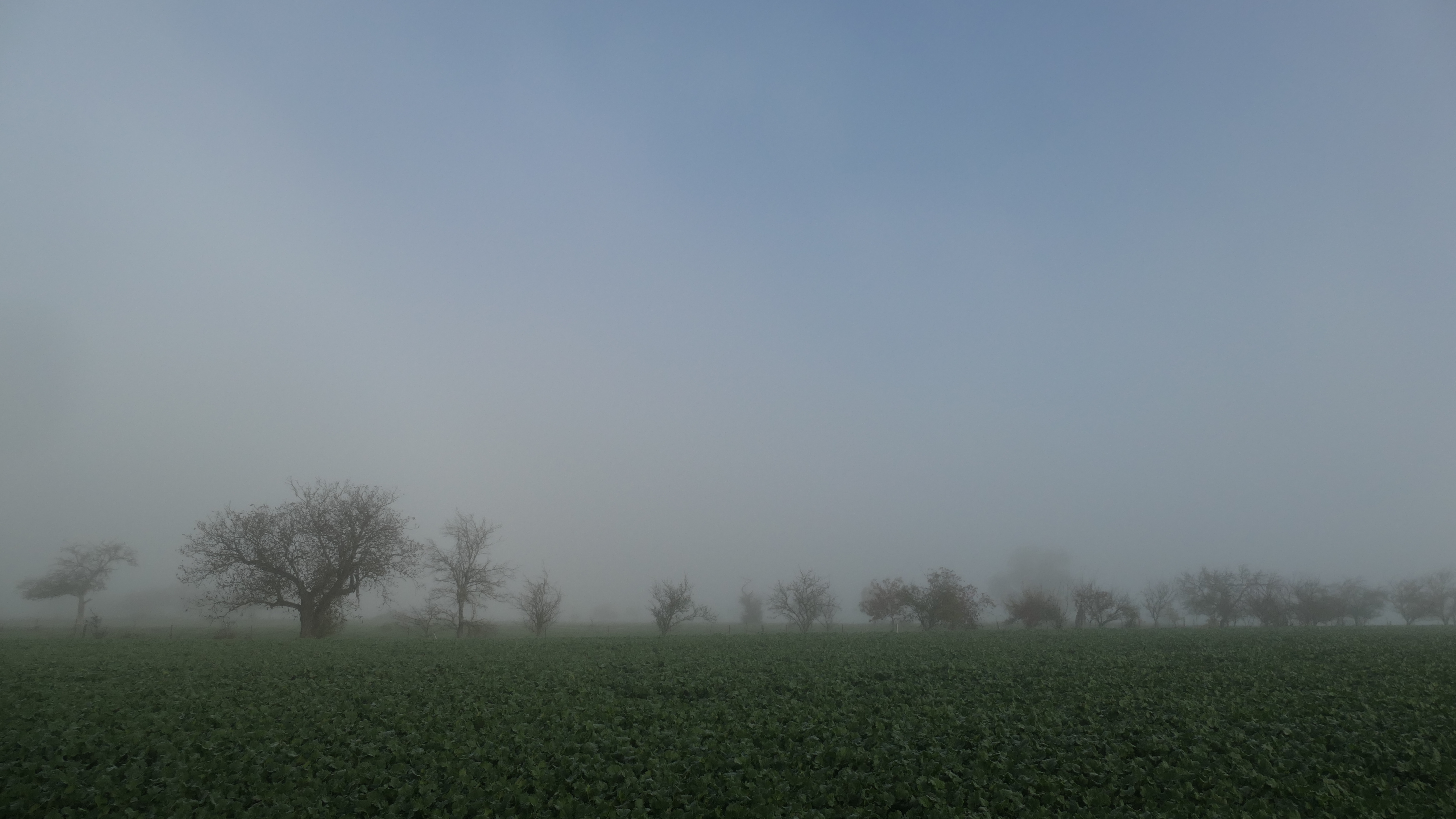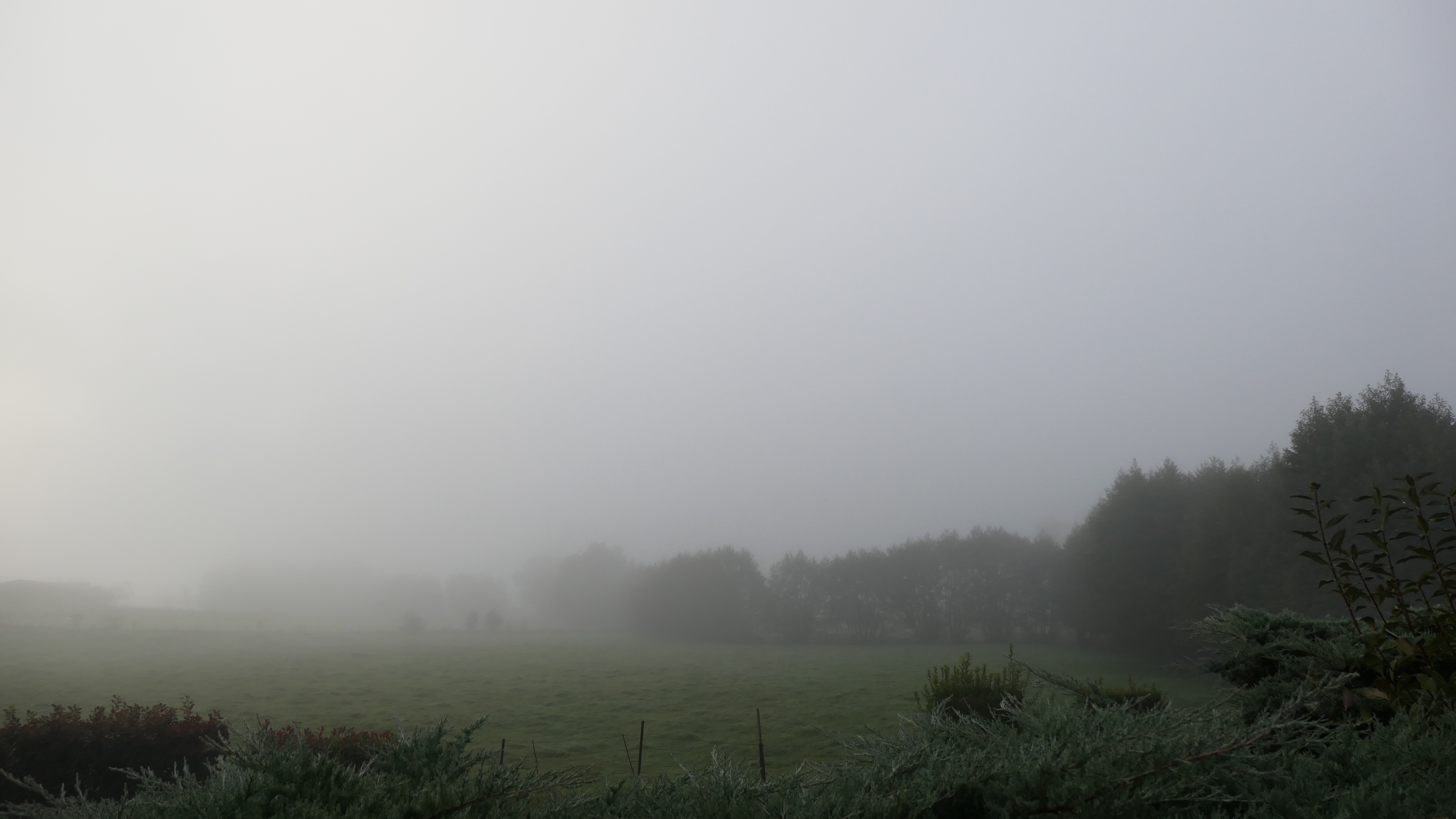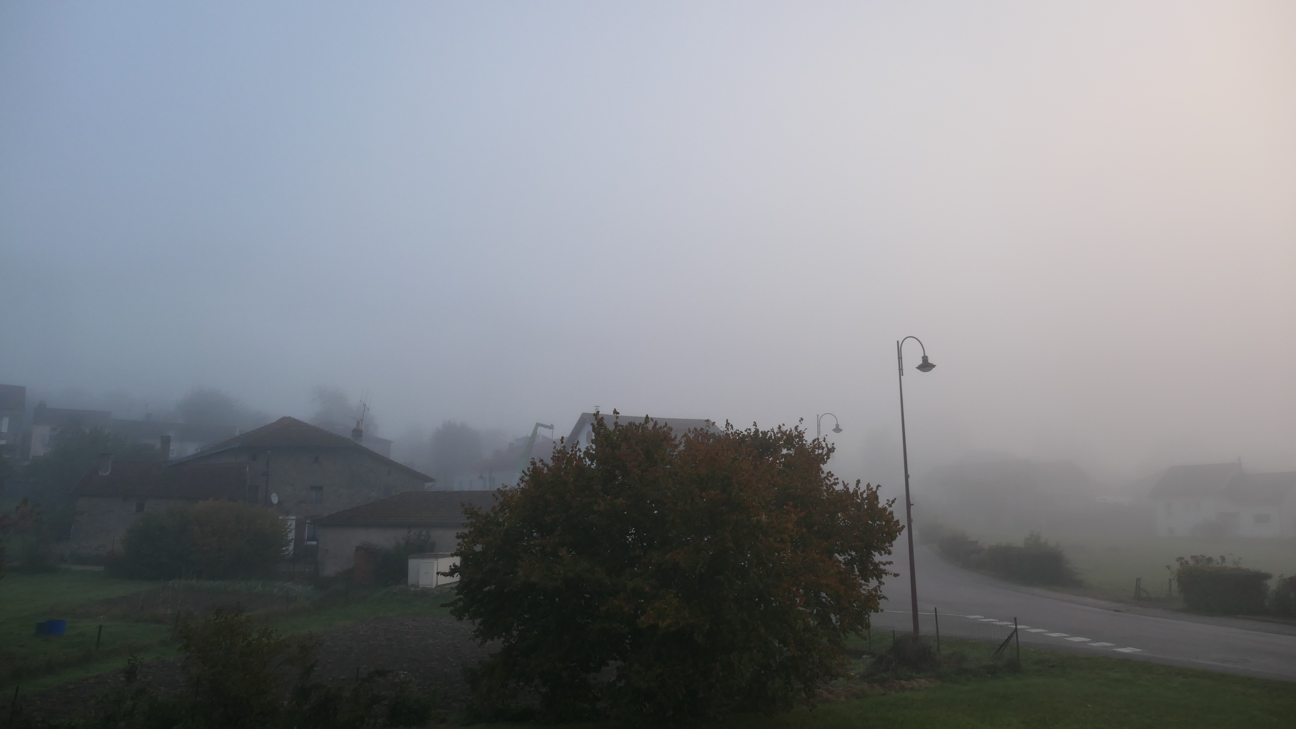 Un brouillard encore assez dense. Frais avec 6°.