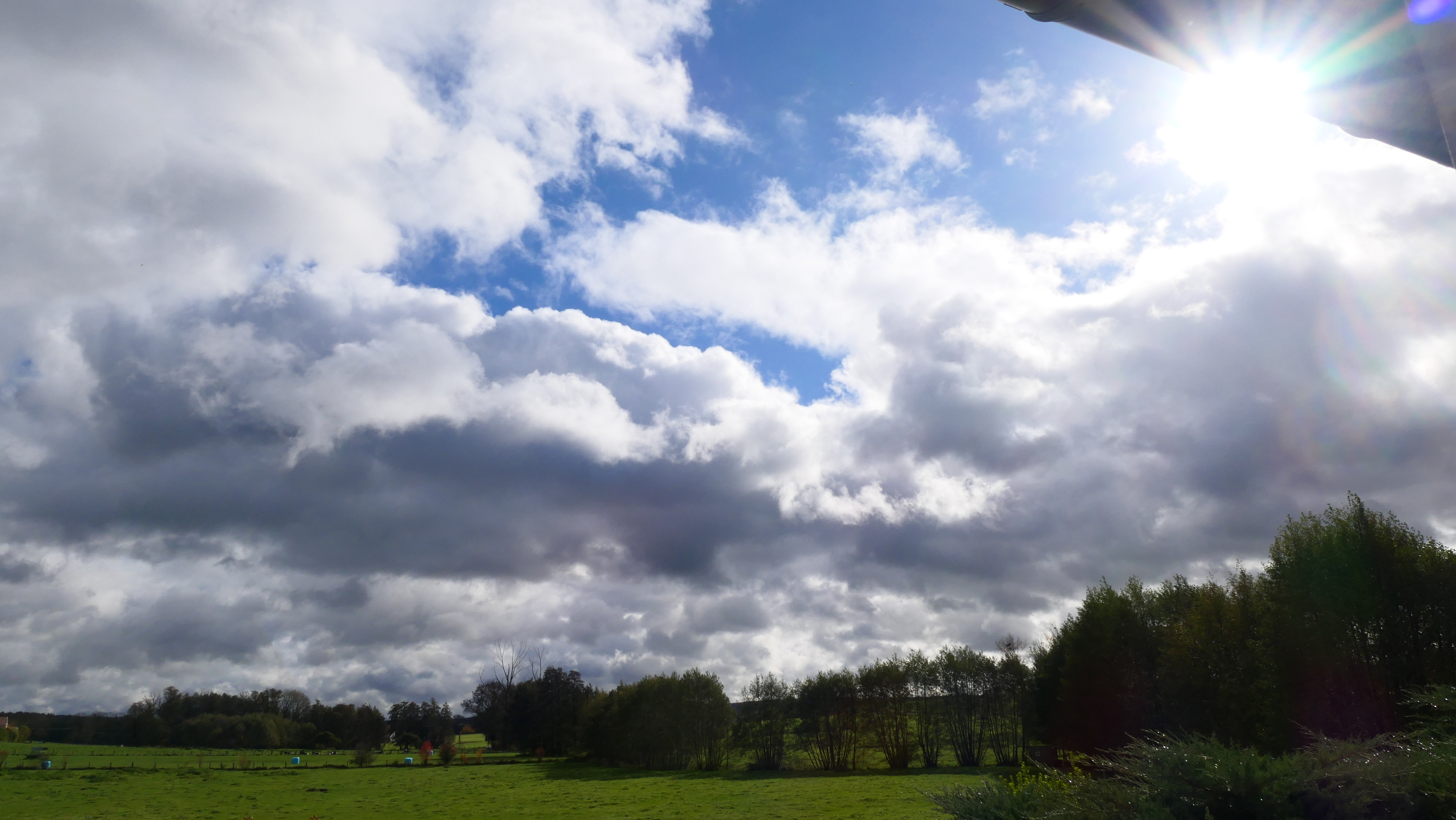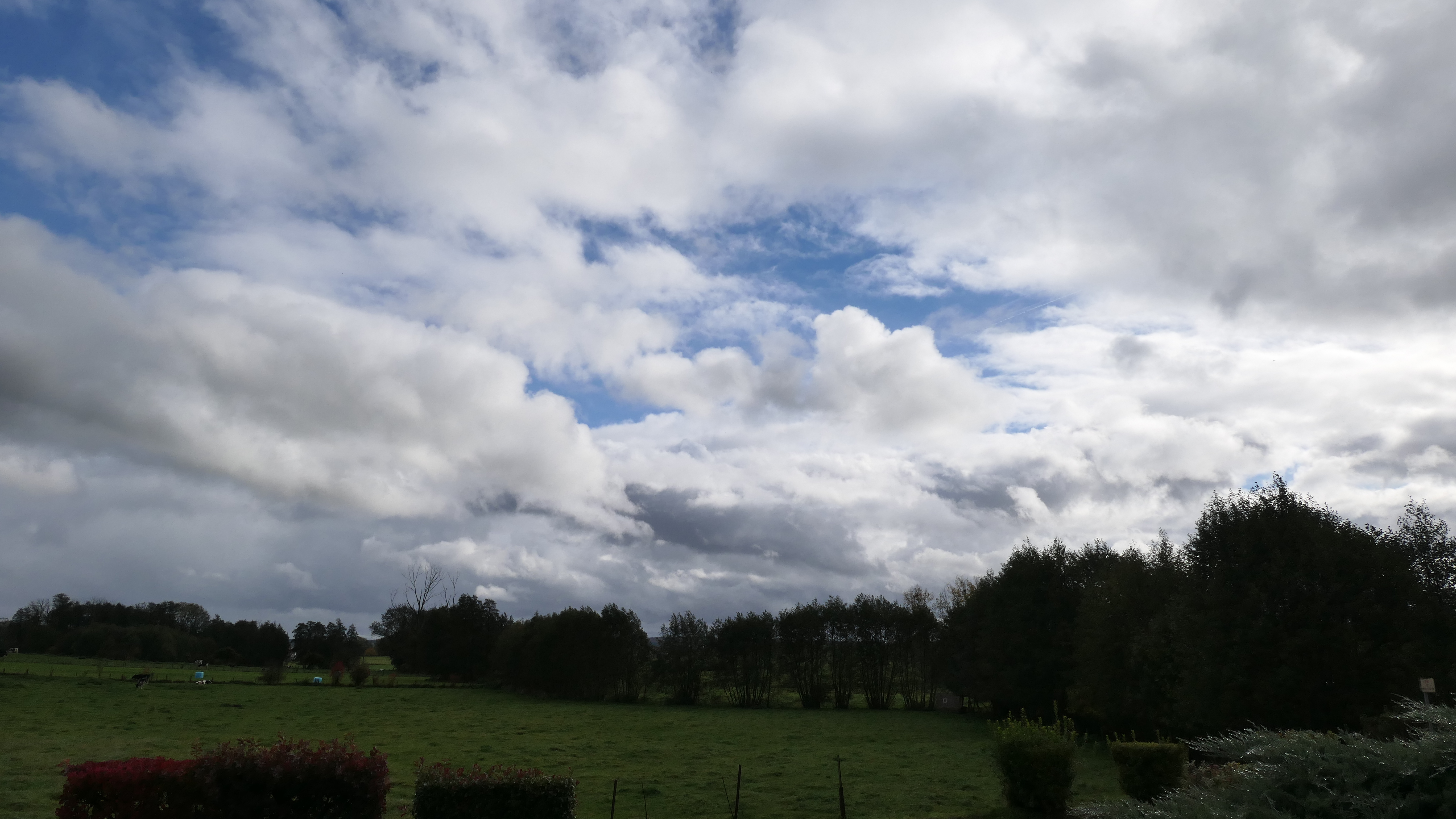Un ciel très changeant sous un fort vent de SO qui apporte une sensation de froid. T 11° ( 7mm de pluie cette nuit)