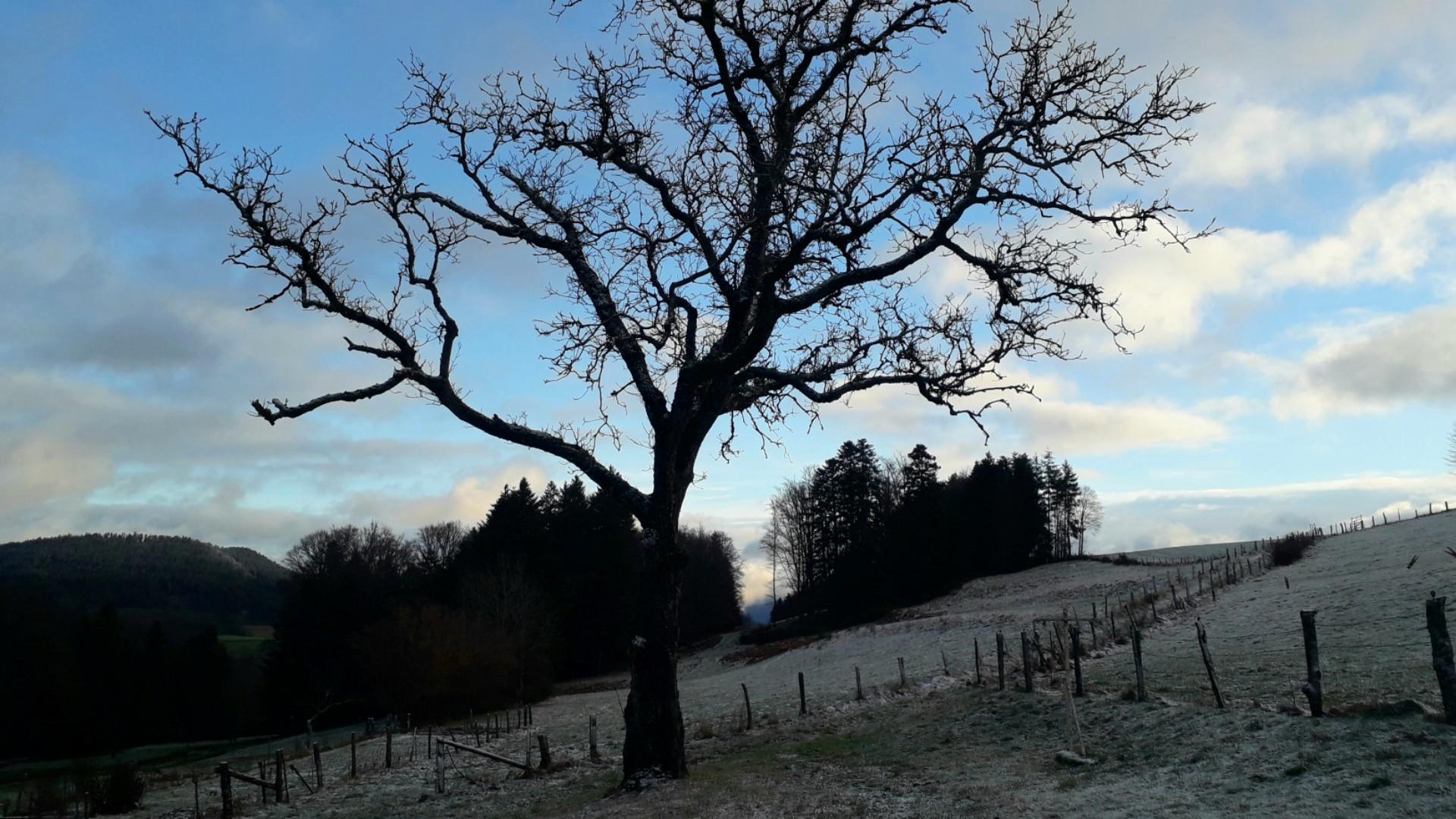 Un peu de neige au sol ce matin. Vent d'Ouest sensible