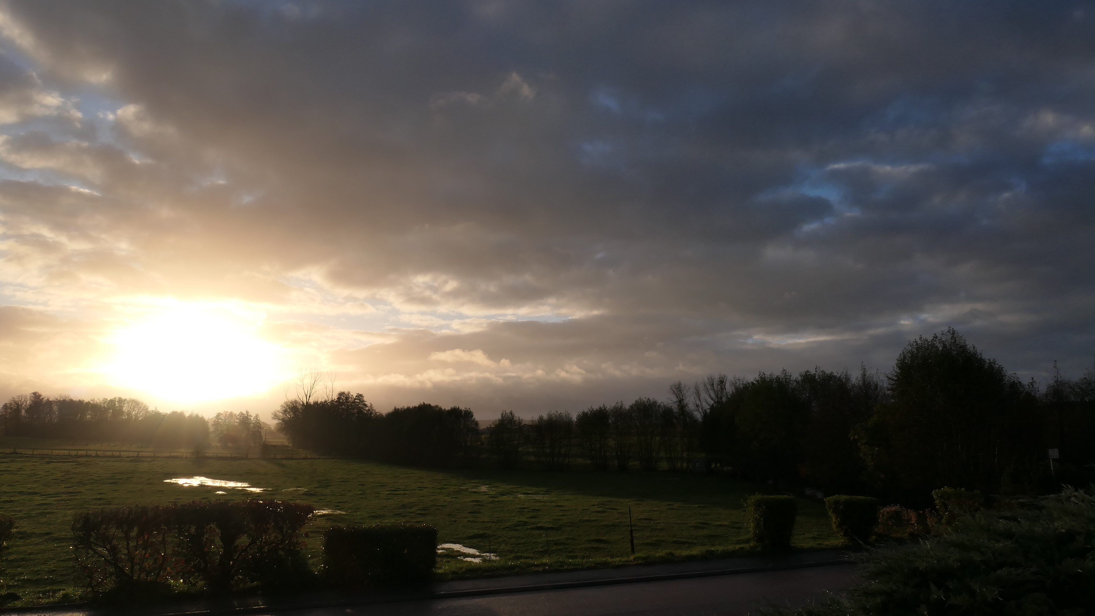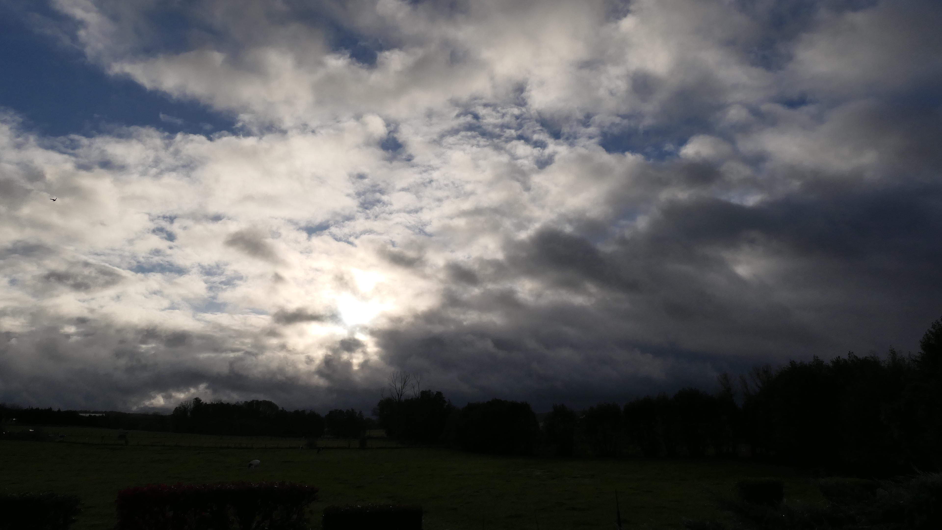 Rapide éclaircie après une grosse averse. Les sols sont bien gorgés d'eau. 7mm de pluie depuis ce matin 9h.