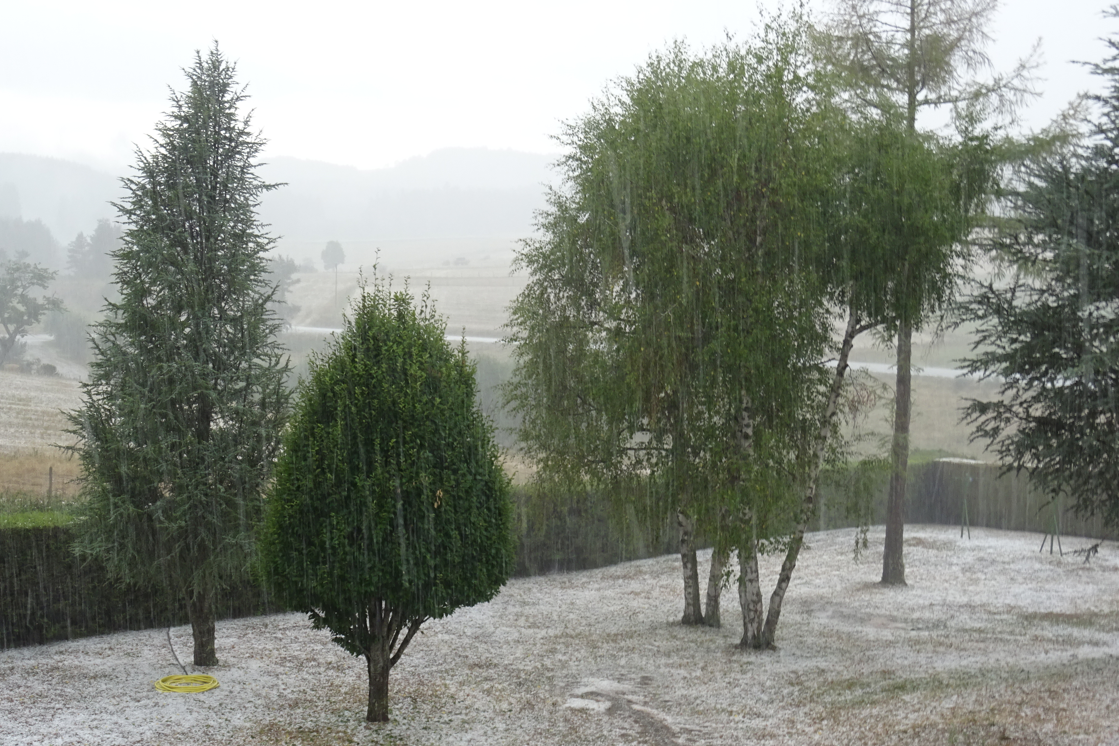 | 17/08/2022 | 16:31 | St Georges Lagricol (La Sagnette) - Alt. 852m |  Couvert | 13h30 orage bref mais violent grêle et fortes bourrasques de vent ; 25 mm puis pluviomètre éclaté. Photo prise sous le déluge. Potager bien impacté courgettes haricots blettes : plus rien | Vidocq |
