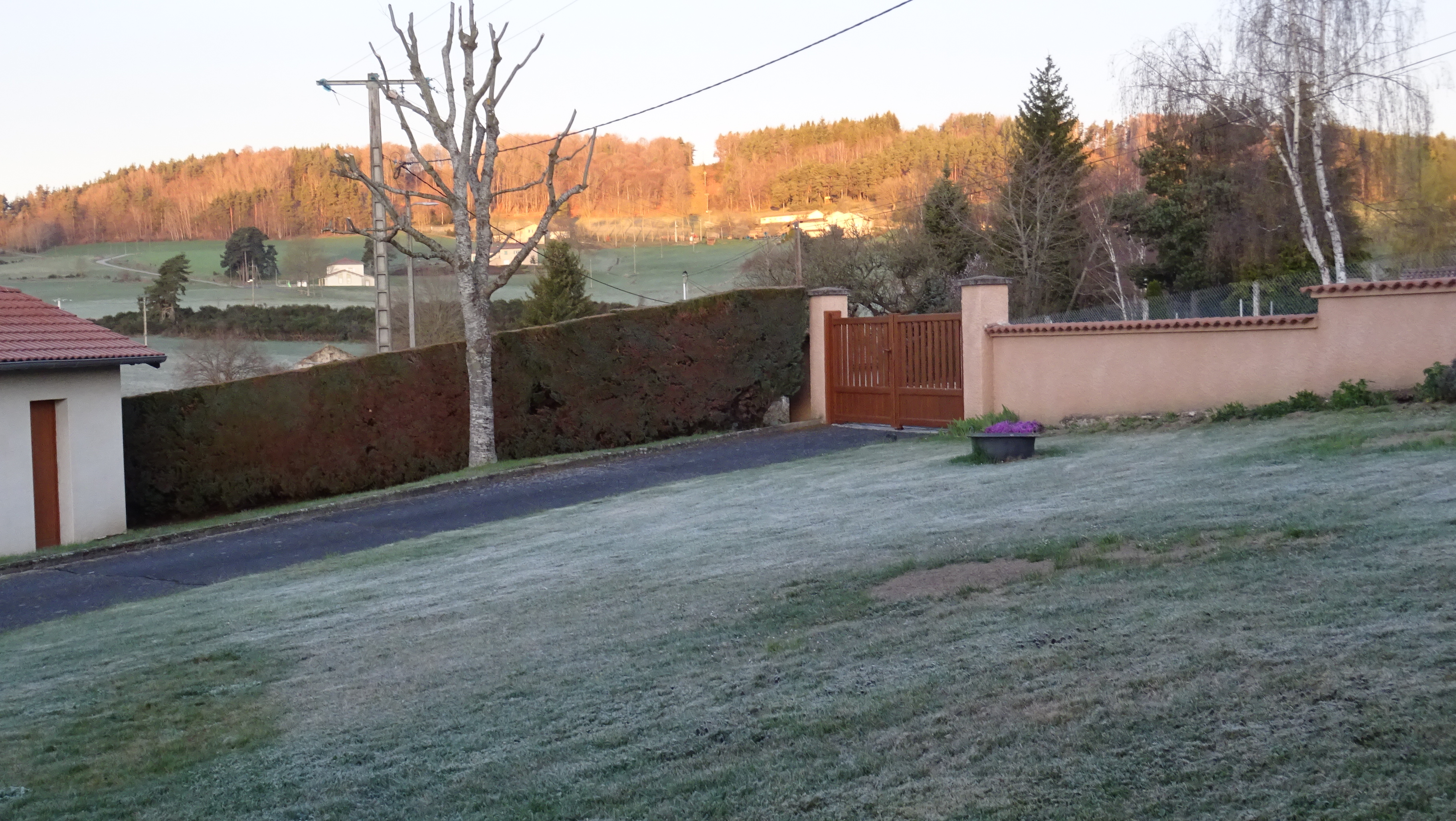 | 17/04/2022 | 07:25 | St Georges Lagricol (La Sagnette) - Alt. 852m |  Température (-3°C) | Ciel clair, gelée blanche avec un -3°C. Faible vent orienté Ouest. Pression/1021hPa. Humidité.85%. Durée du jour : 13h36min + 3min. (Temp maxi d'hier : +18°C.)