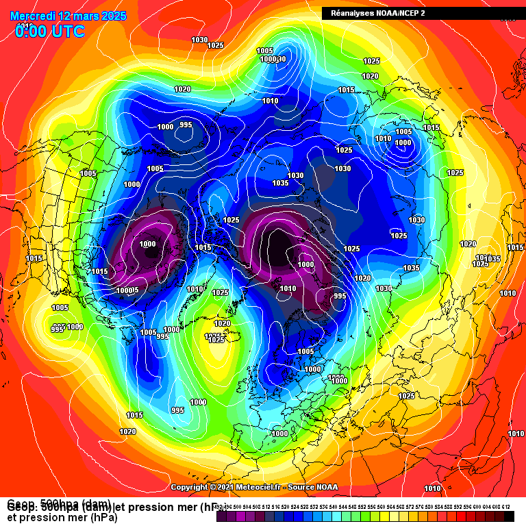 Ces cartes d'archives ont été créées à partir des réanalyses de la NCEP (Reanalysis 1, 2 et édition 20eme siècle). Elles sont de résolution 2.5°x2.5°. Du au nombre très important de cartes (plus de 300000), quelques cartes avec des erreurs peuvent être présentes. Si vous voyez un problème, vous pouvez nous le signaler. Merci.