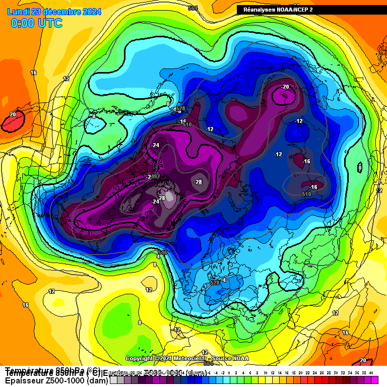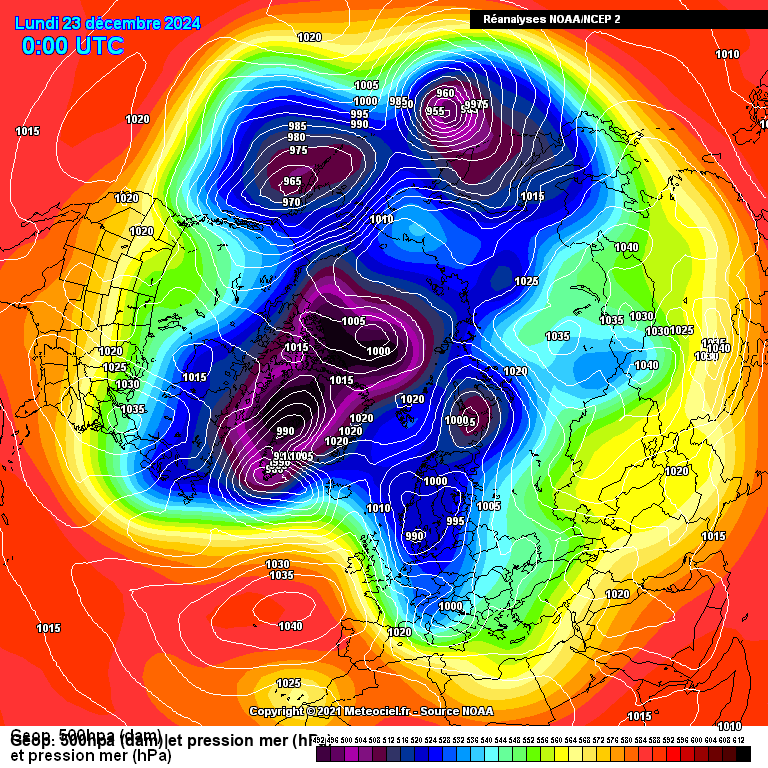 Ces cartes d'archives ont été créées à partir des réanalyses de la NCEP (Reanalysis 1, 2 et édition 20eme siècle). Elles sont de résolution 2.5°x2.5°. Du au nombre très important de cartes (plus de 300000), quelques cartes avec des erreurs peuvent être présentes. Si vous voyez un problème, vous pouvez nous le signaler. Merci.